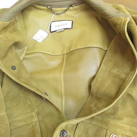 グッチ GUCCI マイクロホール スウェード パンチング ジャケット レザージャケット 羊革 GG 44 茶系 ブラウン イタリア製 メンズ