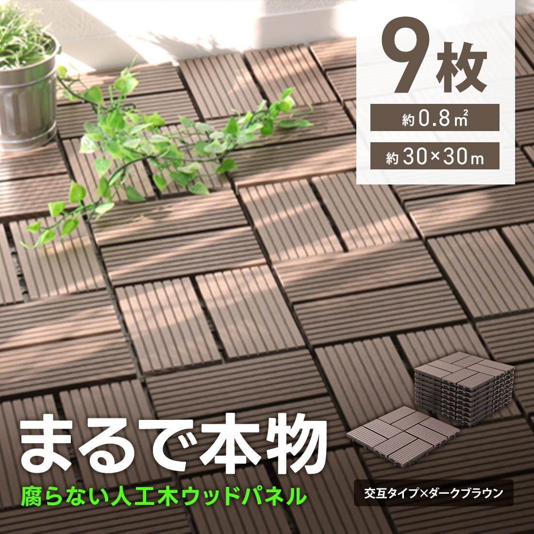 パズルみたいにサイドの凹凸を繋ぎ合わせるだけで簡単に施工が出来るジョイント式ウッドタイル! ベランダの雰囲気を変えたり劣化してきたベランダの修復に最適! 雨や日差しによる劣化に強く耐腐食性もある人工木を使用。 55%の天然木粉と45%の樹脂で出来ており、天然木製と比べると定期的なお手入れも不要! 小さなお子様やペットにも安心。さらっとした感触でささくれや釘による怪我の心配もなし。 安全に長期間使用できる優れものです! 【商品詳細】 カラー:ダークブラウン(交互タイプ) 表面のサイズ(約):幅29.5cm×長さ29.5cm×高さ2cm ジョイント部分も含んだサイズ(約):幅30.5cm×長さ30.5cm×高さ2cm 表面隙間:5mm 重量(約):0.9kg 圧力強度:3000N 材質:WPC素材(木材・プラスチック複合材) 表面・・・人工木(天然木の木粉55%入り) 裏面・・・ポリプロピレン樹脂 【商品内容】 ウッドパネル × 9 |