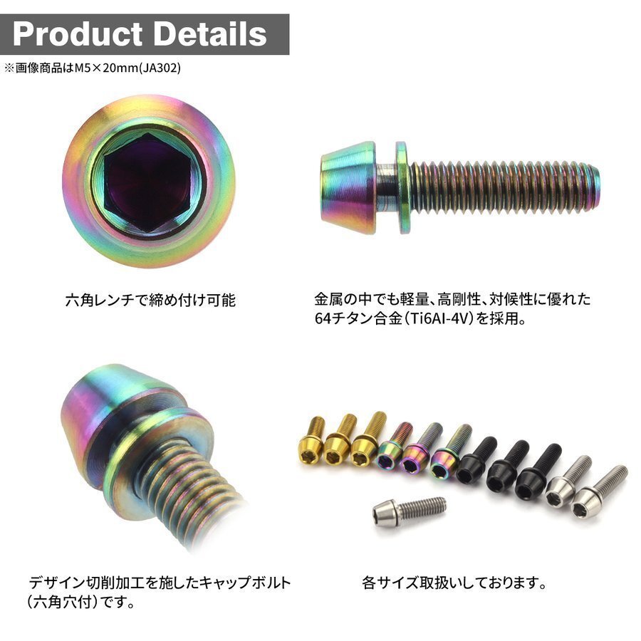 | 六角穴付き ワッシャー組込 キャップボルト 金属の中でも軽量、高剛性、対候性に優れた64チタン合金(Ti6AI-4V)を採用。 六角穴付きの、ワッシャーを組み込んだ、ドレスアップにも最適なボルトです。 |
