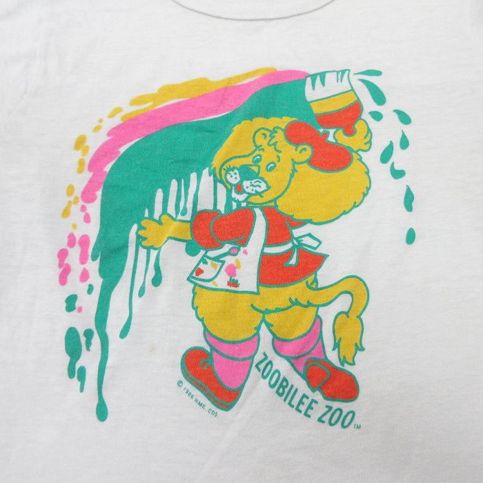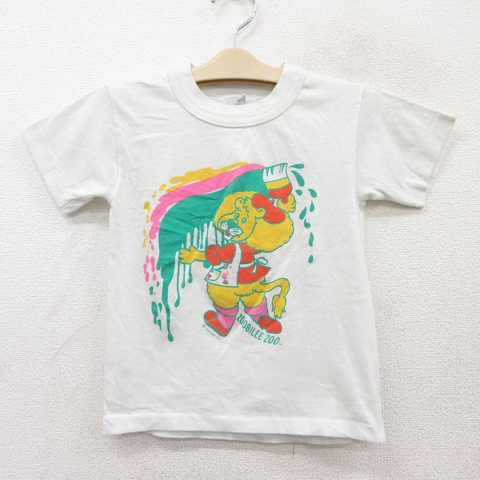 【商品名】 古着 半袖 ビンテージ Tシャツ キッズ ボーイズ 子供服 80年代 80s ライオン クルーネック USA製 白