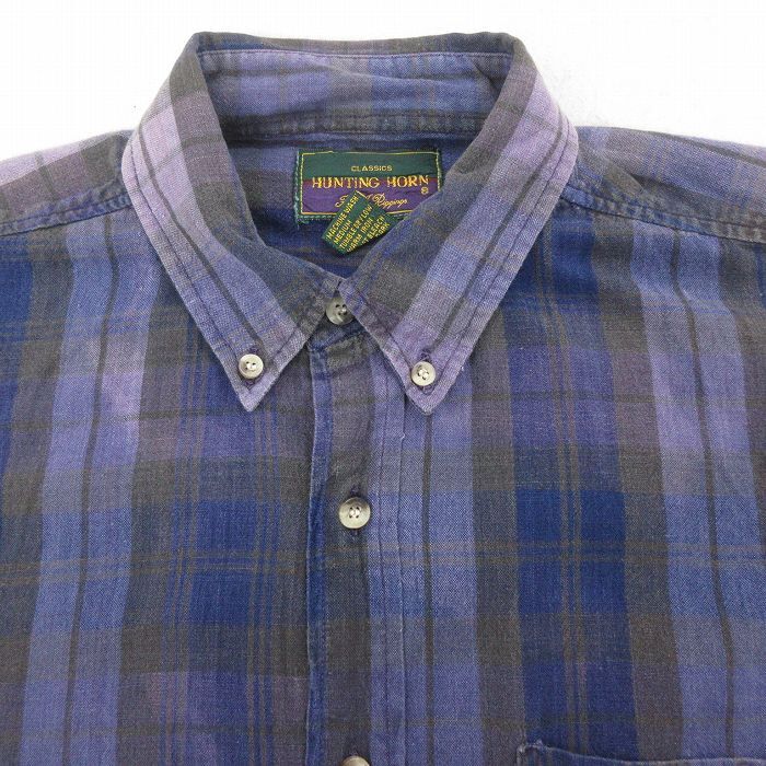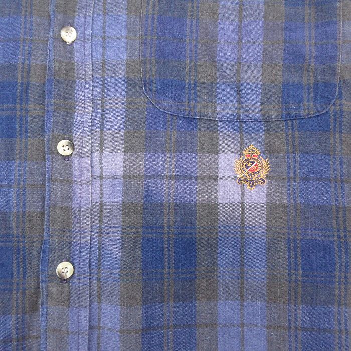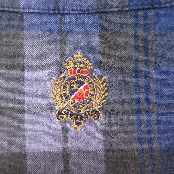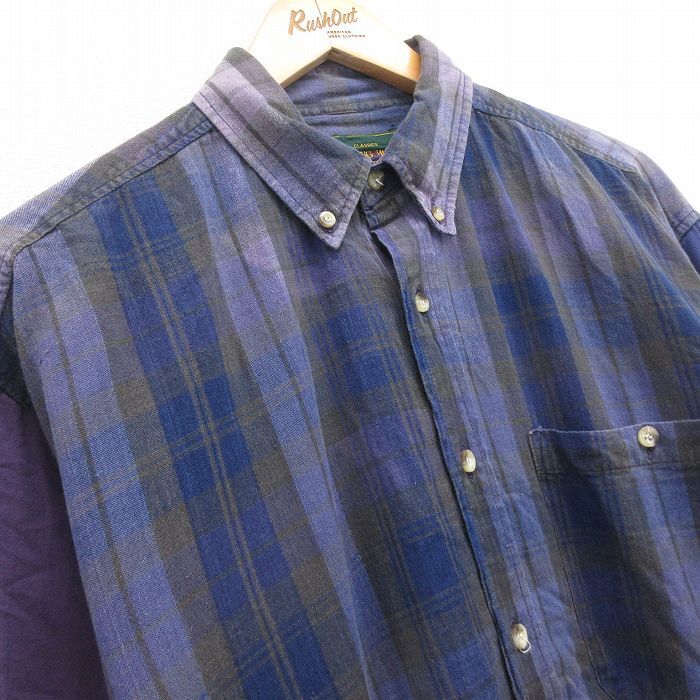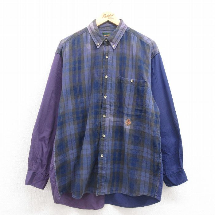 【商品名】 XL★古着 長袖 シャツ メンズ 00年代 00s クレイジーパターン コットン ボタンダウン 紺他 チェック