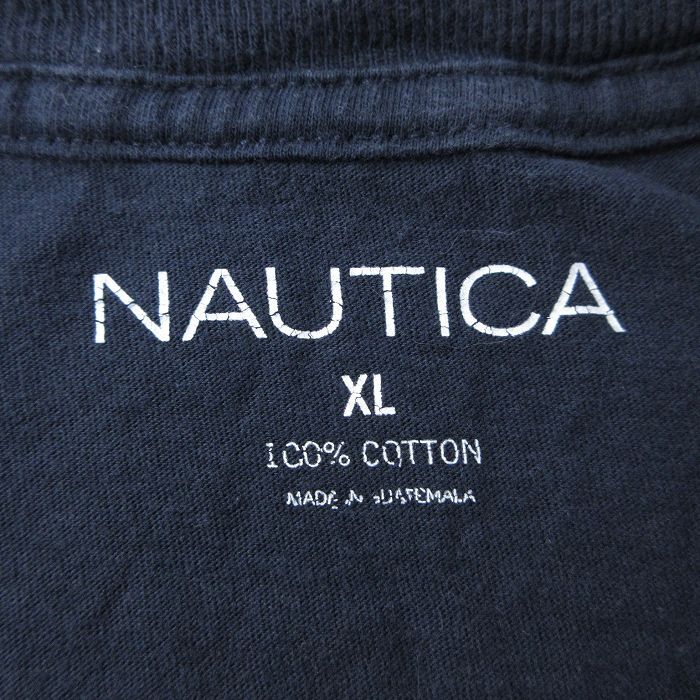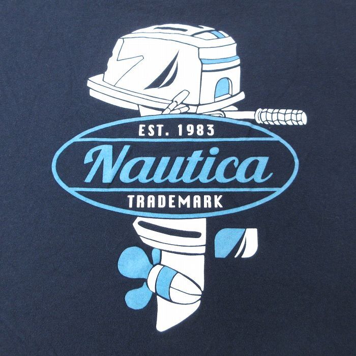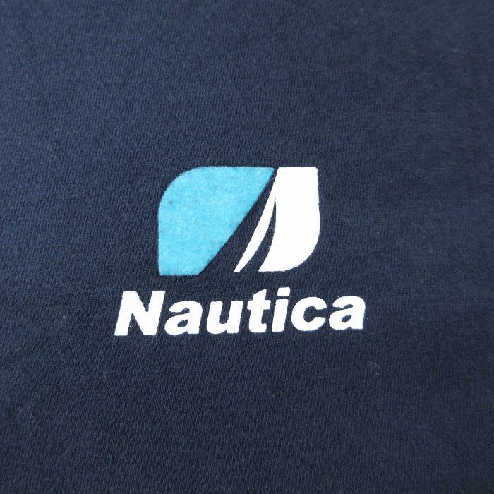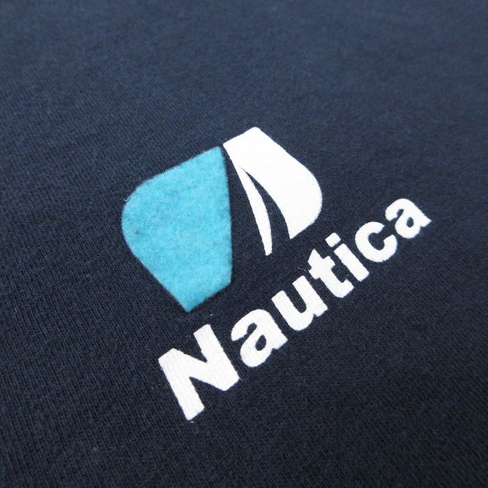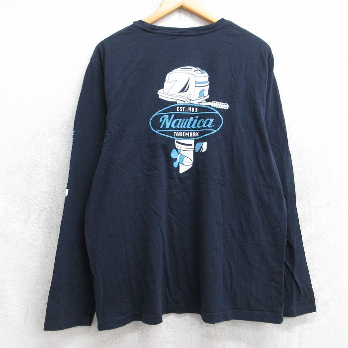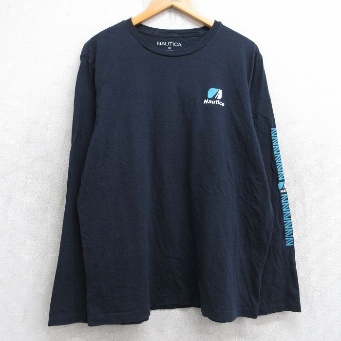 【商品名】 XL★古着 ノーティカ 長袖 ブランド Tシャツ メンズ ビッグロゴ フロッキープリント コットン クルーネック 濃紺