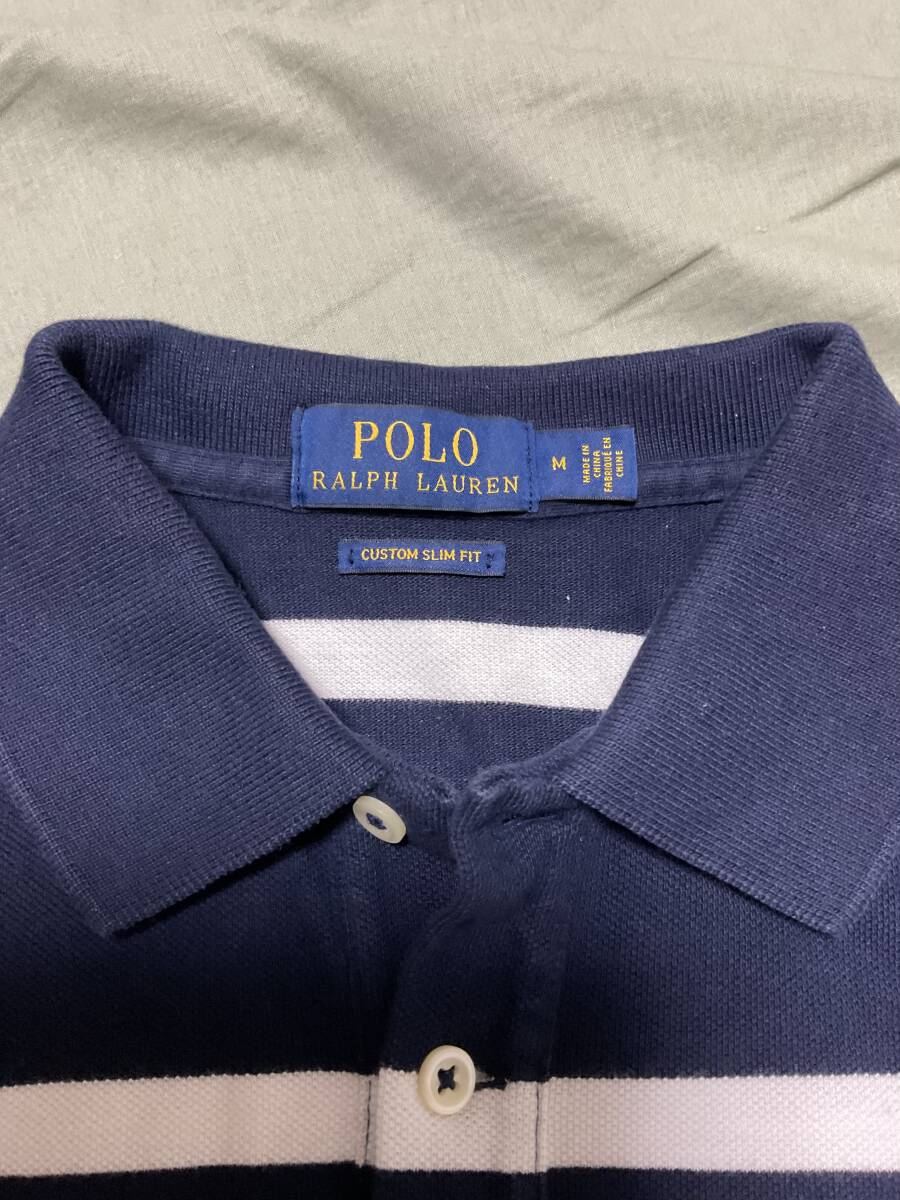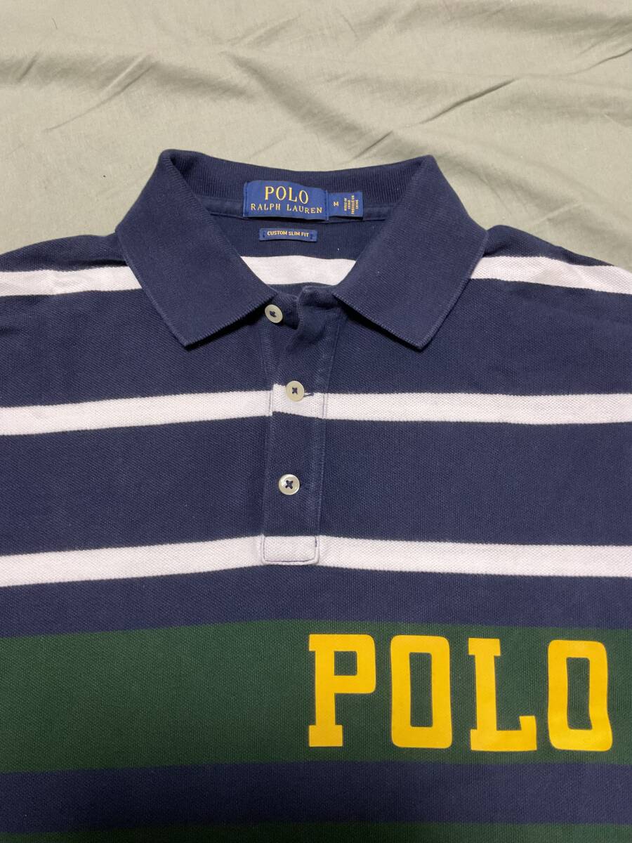 美品 POLO RALPH LAUREN ポロ ラルフローレン 半袖ポロシャツ 鹿の子 カスタムスリムフィット 近年タグ 19年製 ロゴプリント ボーダー M