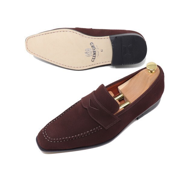 GLENFORD 本革スエード スクエアトゥ ローファー