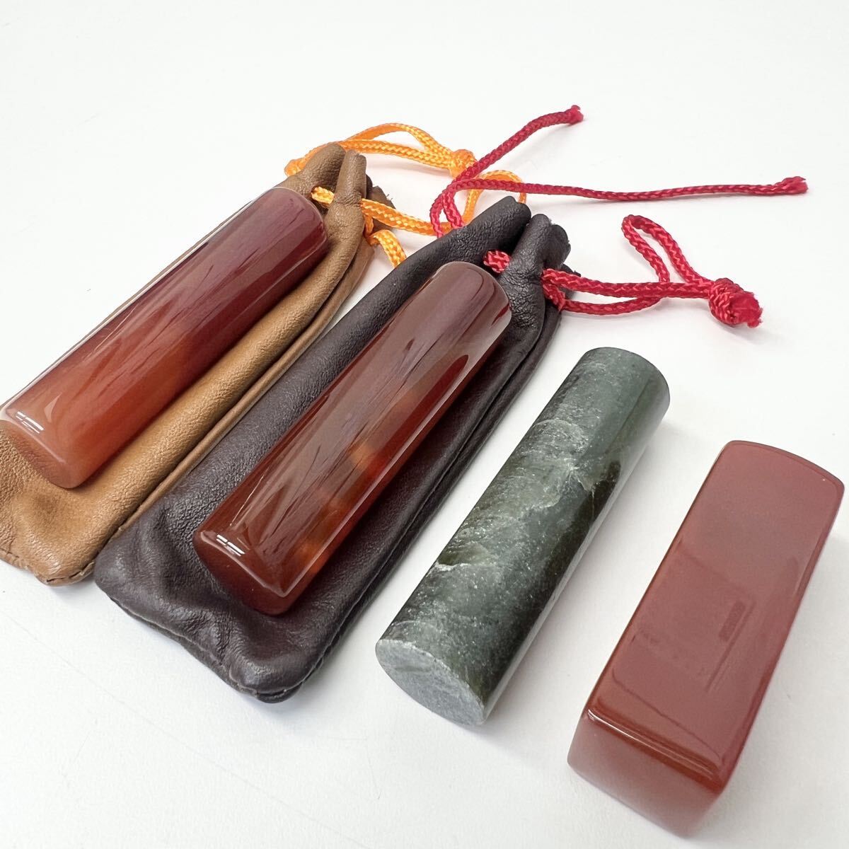 印鑑4点セット メノウ 瑪瑙 ヒスイ 翡翠 石材 約15mm