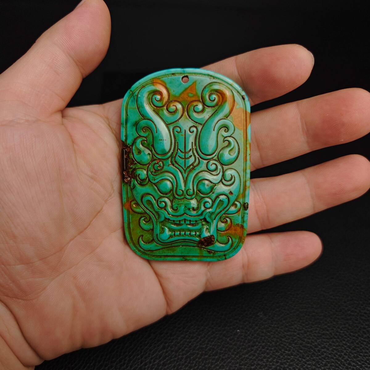 中国骨董 和田玉【戦国時代のターコイズ竜のストラップです印章 彫刻品 時代物 本物 古美術 旧蔵 珍品