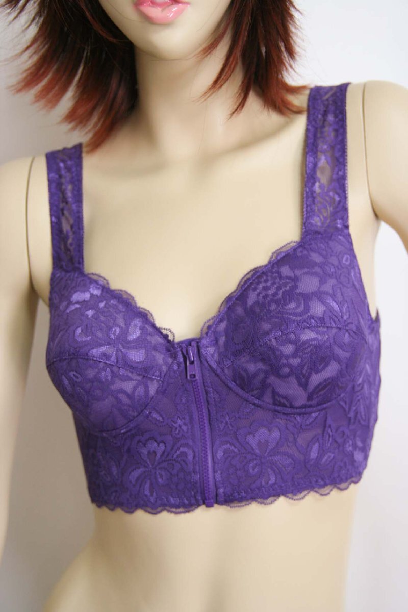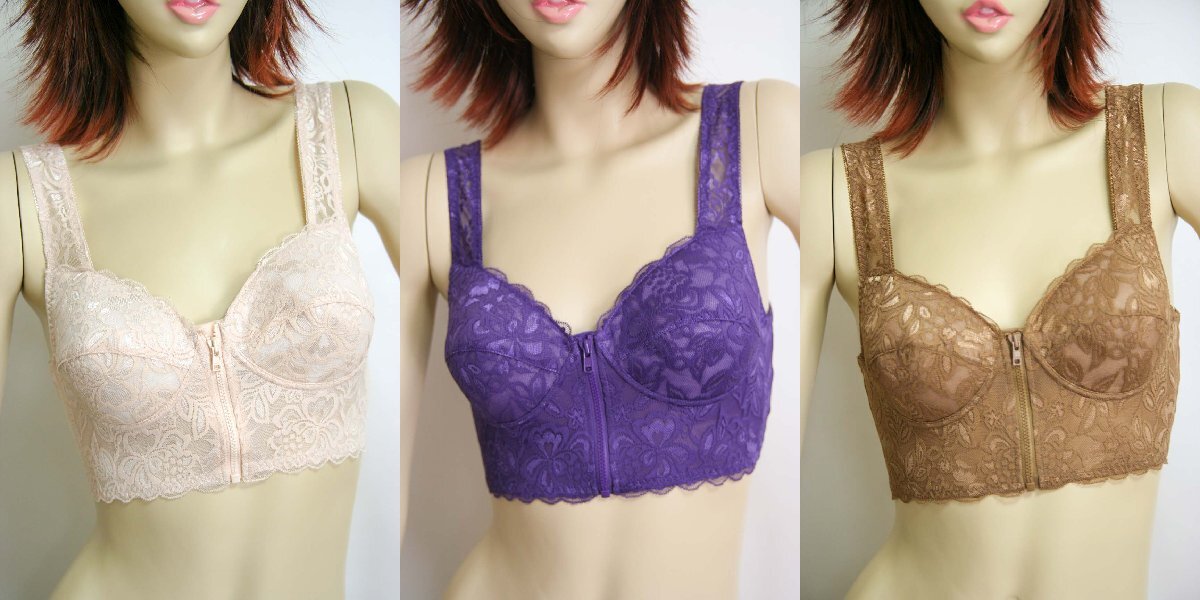 送料無料◆超お得3色組◆綿95%◆前開きタイプ◆立体カップ◆ノンワイヤー◆背筋きれい◆セミロングブラ(M/ベージュ&パープル&モカ)