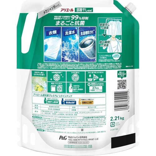 新品 アリエール 2210g大容量 詰め替え 天日干し級にさわやかな香り 部屋干し 超抗菌プレミアム 液体 洗濯洗剤 89