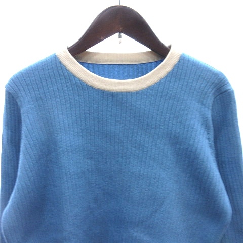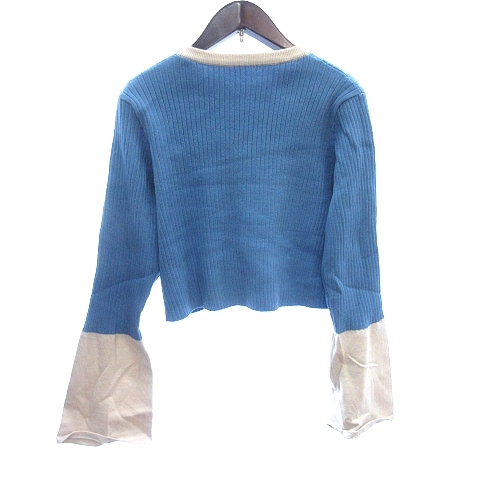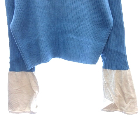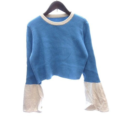ミスティック mystic ニット セーター パイピング 切替 フレアスリーブ 長袖 F 水色 ライトブルー /AU レディース