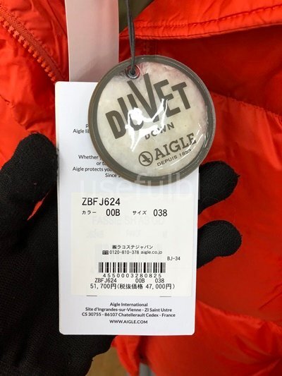 ・商品名:【AIGLE】エーグル ダウン レディース ジャケット 上着 Mサイズ オレンジ 未使用品