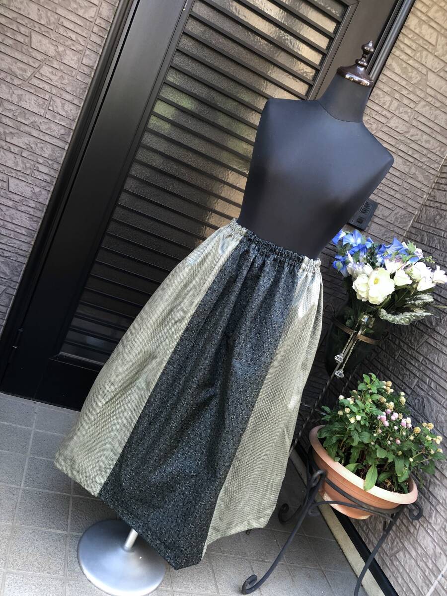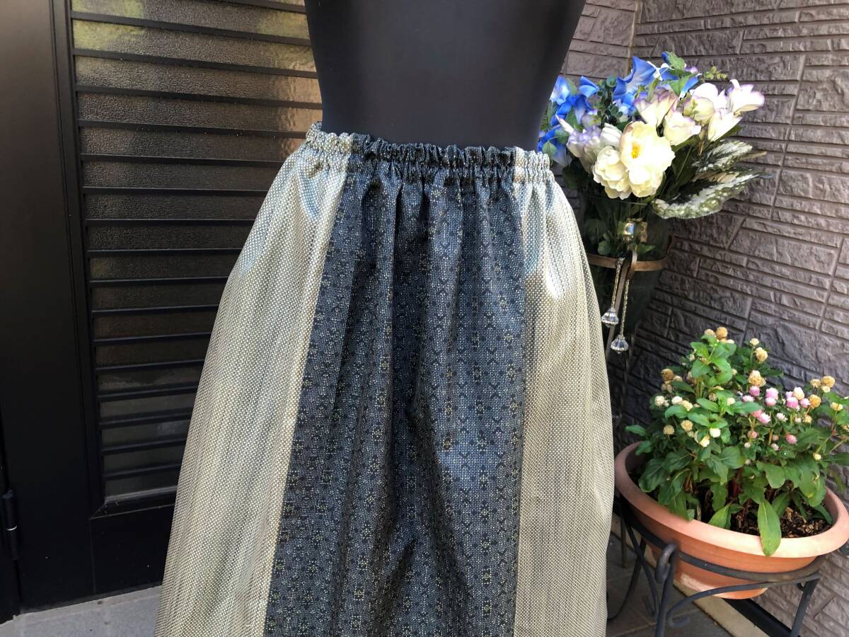 ハンドメイド 着物リメイク・和服リメイク 大島紬 フレアスカート・ロングスカート 古布 アンティーク