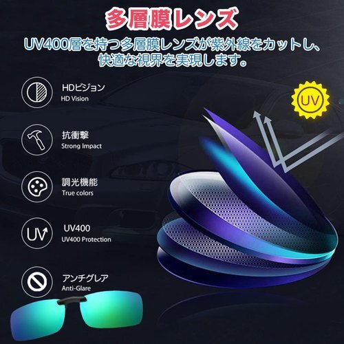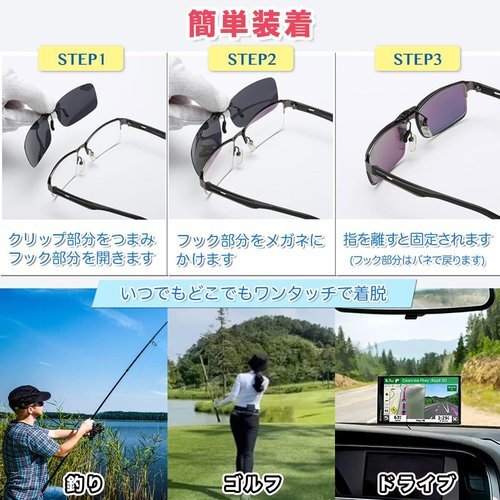 新品 ZesMark 軽量5g ワンタッチ装着 クリップオン 眼鏡の上から メガネ UVカット 偏光 サングラス 63