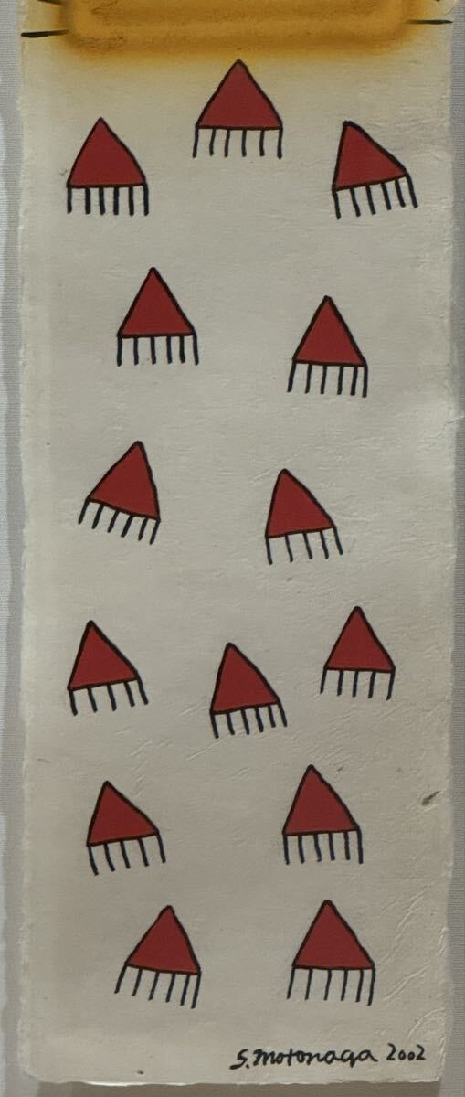 元永の作風は、特有のタッチから抑揚のある線や形、柔軟性のある色彩は創作の原点ともいえる『自然のかたちや色』を連想させ、どこか心が落ち着く様な印象すらも受けます。