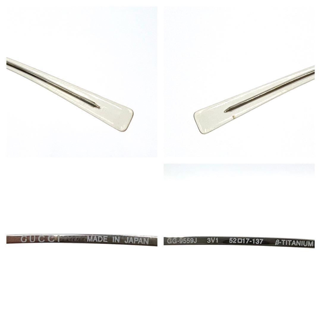 メガネ 眼鏡 サングラス アイウェア 度入り サイドロゴ ワンポイントロゴ リムレス ツーポイント Y2K GG-9559J 3V1 5217-137 ケース付き
