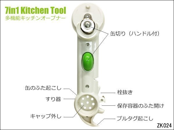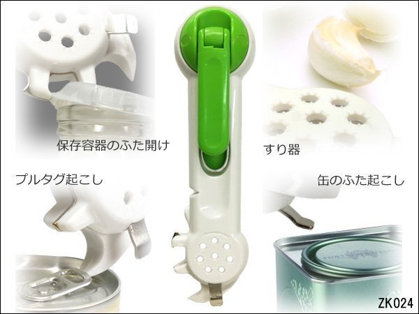 | ■キッチン 便利 マルチオープナー 1人7役 便利ツール ■使い方7通り!軽い力で開けられるマルチオープナーです。 ■缶切り・栓抜き・プルタグ・ペットボトル等のオープナーのほか にんにくなどに使えるミニすりおろし器がひとつにまとまっています♪ ■全長約20㎝ ◎輸入品につき、若干スレキズ等ある場合がございます。その辺をご理解いただける方のみご購入ください。 ・こちらの商品は定形外郵便での発送になります。 複数、他の商品と同時落札の場合、発送方法が変更になる場合がございます。 | ||