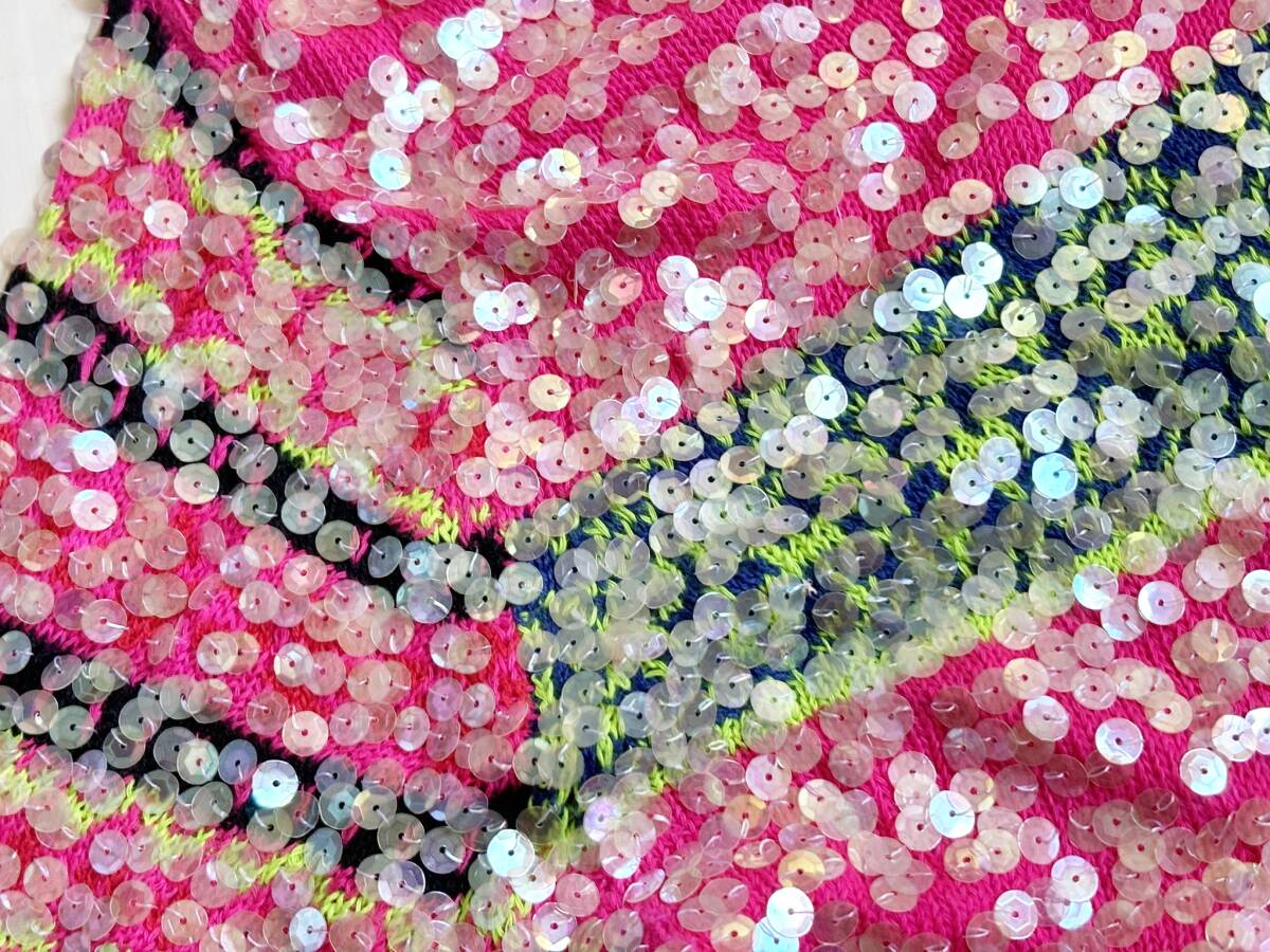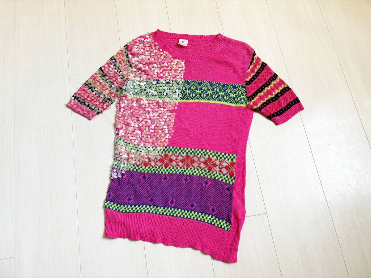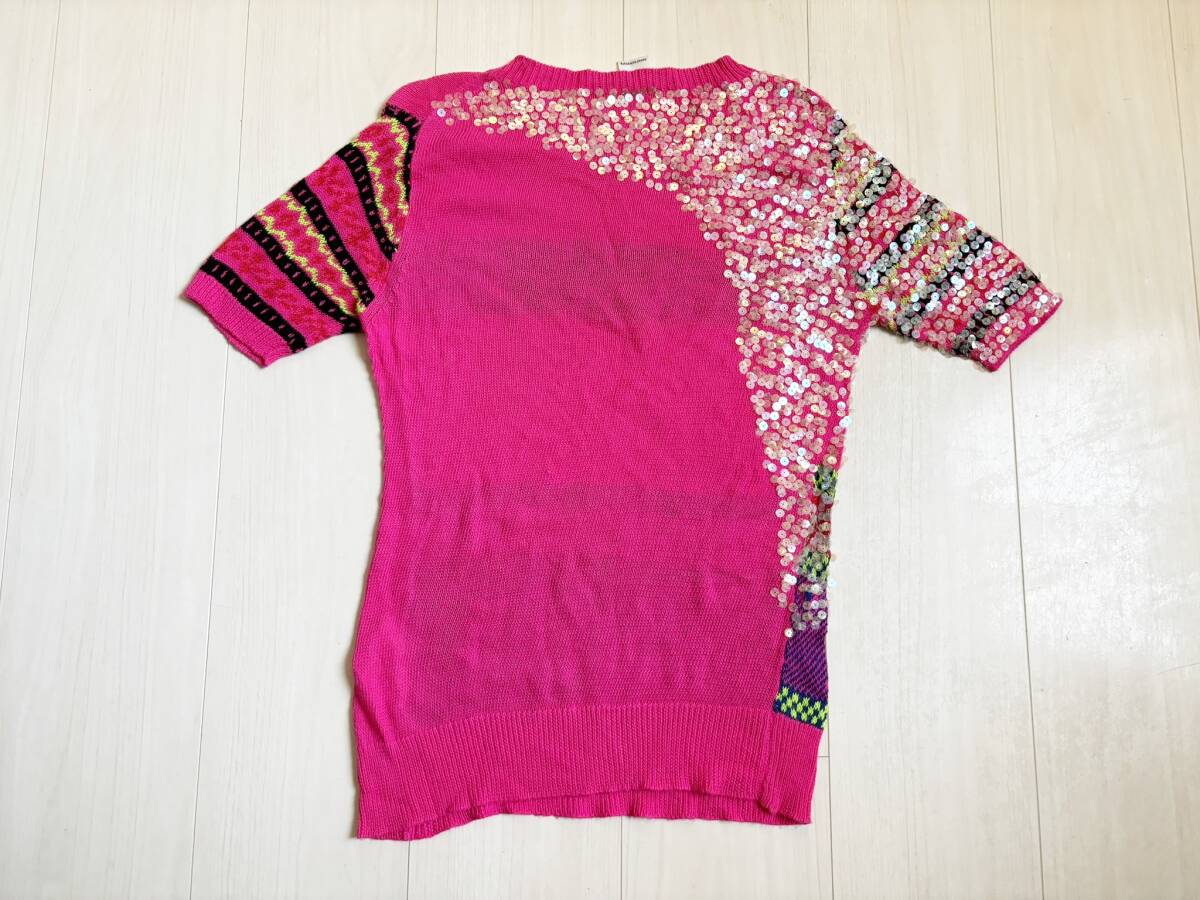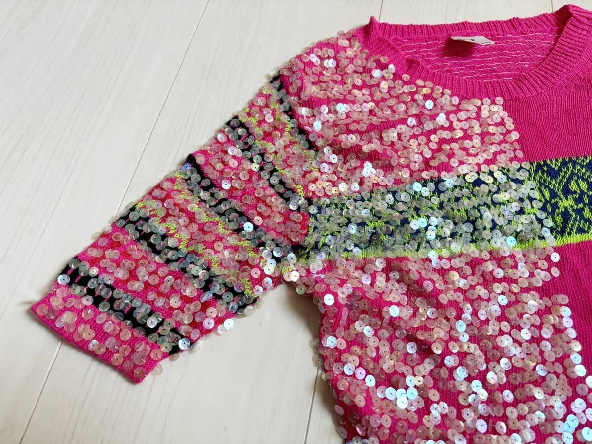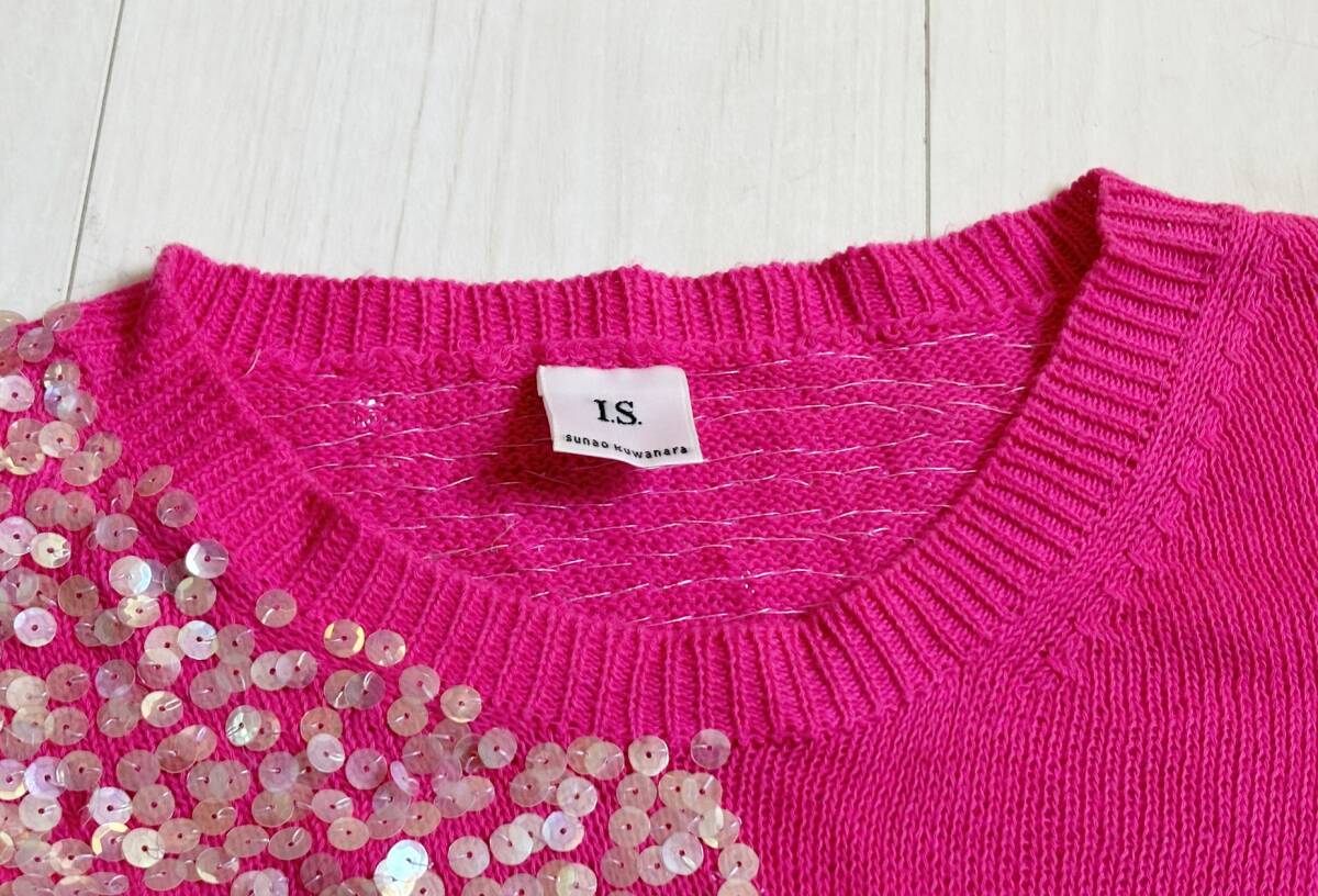 I.S. SUNAO KUWAHARA スナオクワハラ ニット スパンコール ランダム ボーダー コットン プルオーバー セーター ピンク △9 になります。
