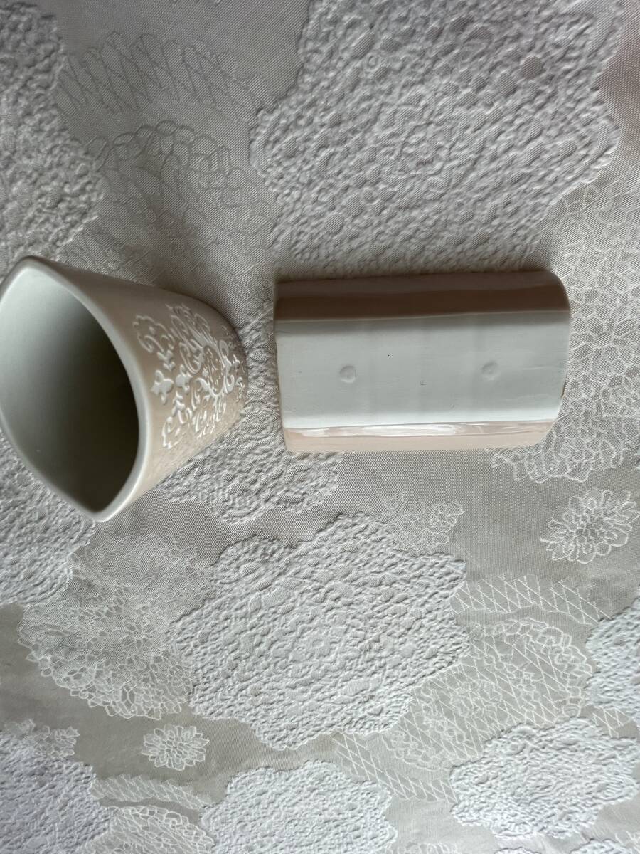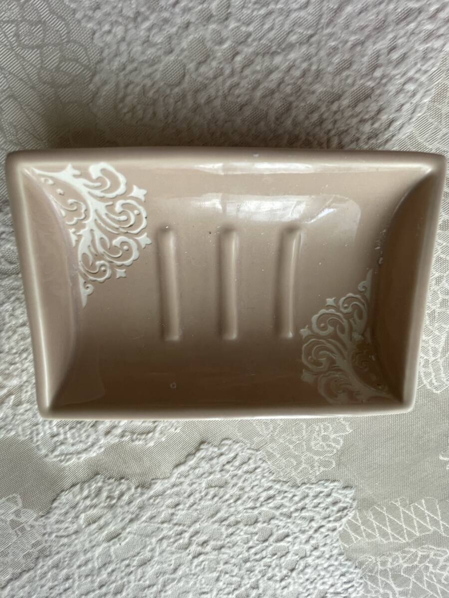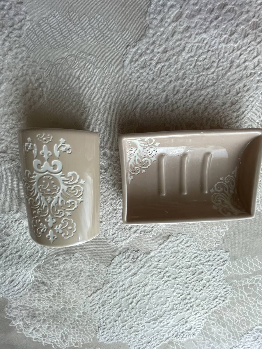 自宅保管品・ソープディッシュと歯ブラシ立て・洗面セット・陶器製・ピンクベージュ・200円
