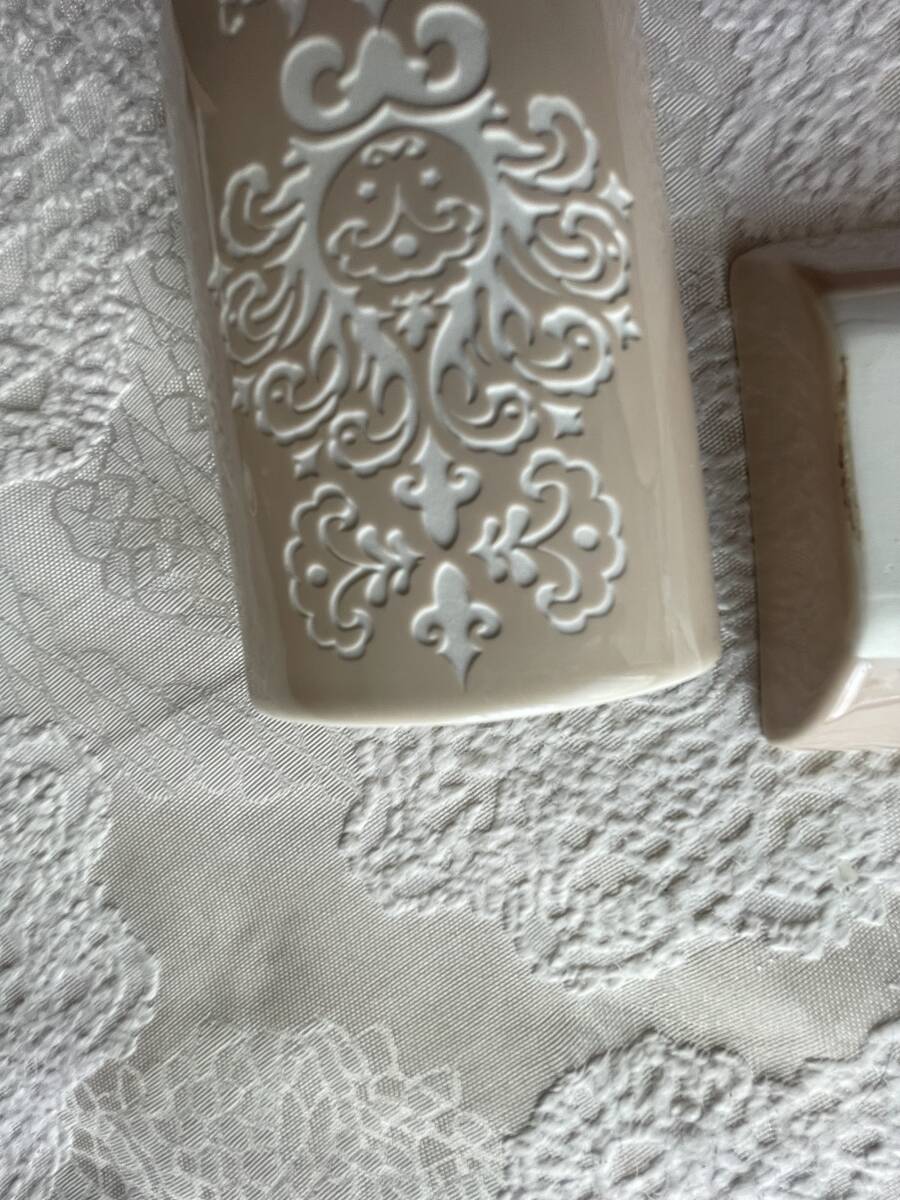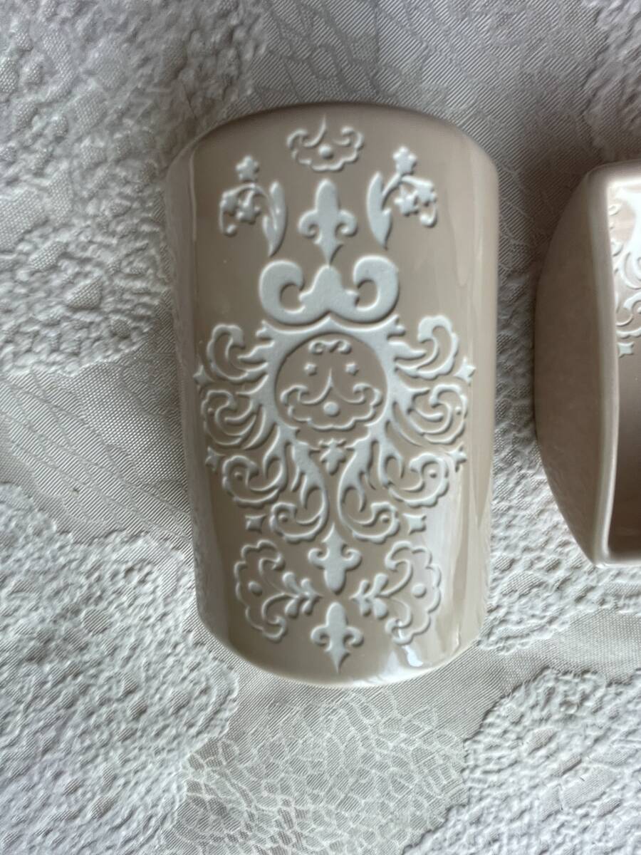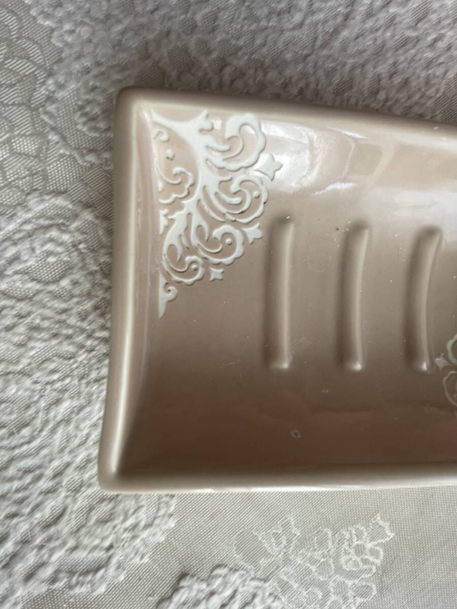 自宅保管品・ソープディッシュと歯ブラシ立て・洗面セット・陶器製・ピンクベージュ・200円