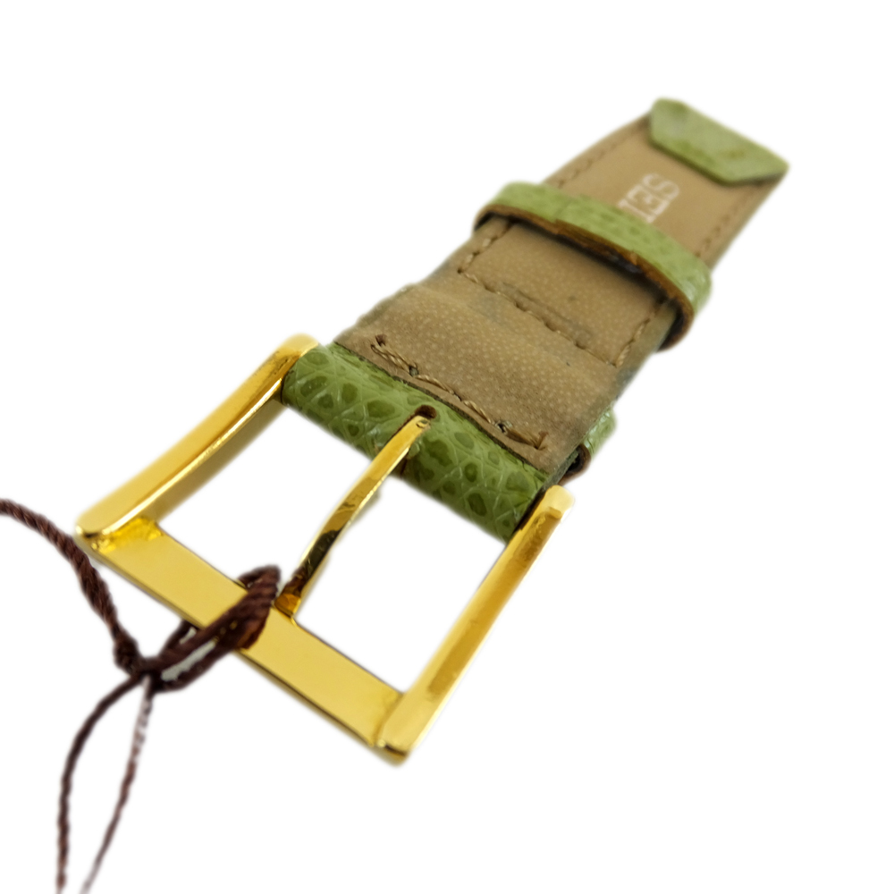 【天白】セイコー NOIE レザーベルト 14mm グリーン ゴールド金具 牛革 ピンバックル 替えベルト