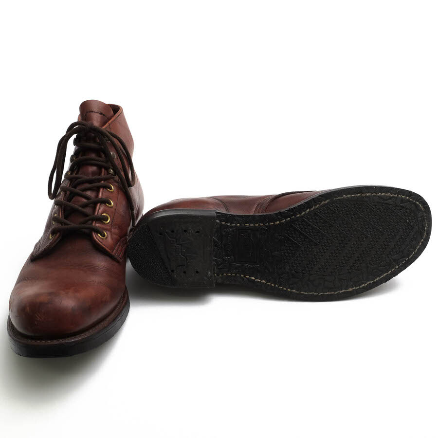 ◆ブランド名 RED WING ◆サイズ表記 US7 ◆日本サイズ参考 約25.0-25.5cm ◆サイズ詳細 アウトソール靴底全長 約28.5cm、アウトソール靴底幅 約10cm、ヒール高さ約3cm、ブーツ高さ 約15cm ◆仕様 ワイズD ◆特徴 オイルプルーフソール プレーントゥ グッドイヤーウェルト製法 ◆型番 956 ◆生産国 USA ◆素材 上質な革 レザー ◆素材詳細 牛革 ◆色 ブラウン 茶 ◆商品状態 中古品-良い ◆状態詳細 ヒール修理済み ◆備考 羽タグ |