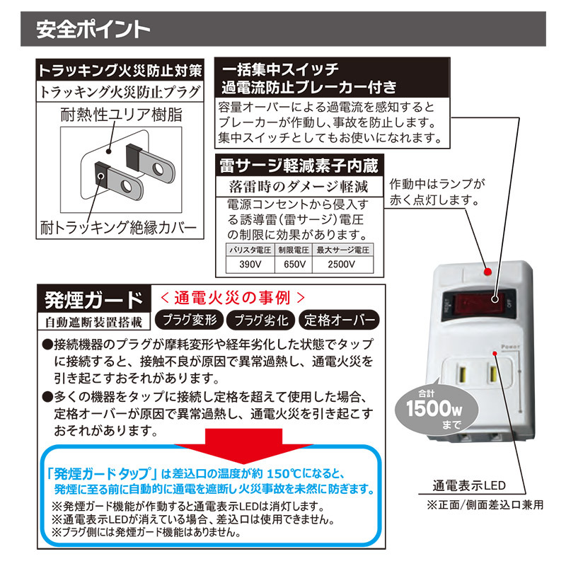 ● 通電火災を防ぐ発煙ガード自動遮断装置搭載