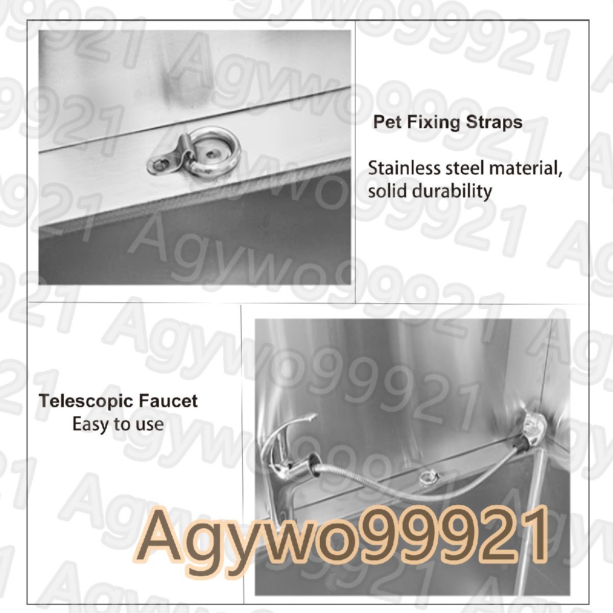 ステンレススチールのドッグバス: 耐久性の高いステンレススチールで作られており、錆びず、お手入れとメンテナンスが簡単です。