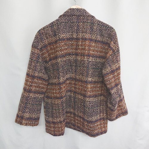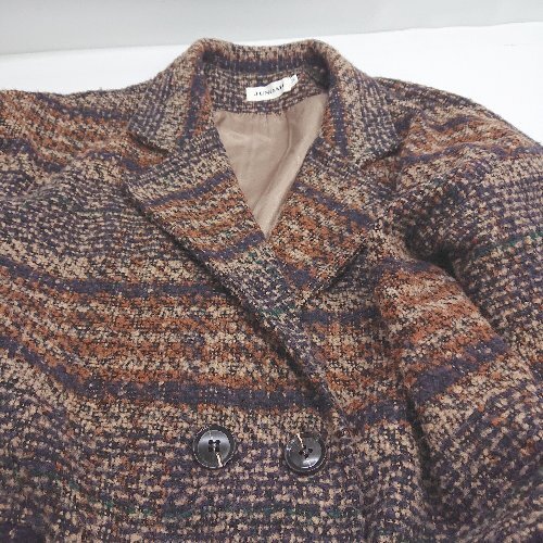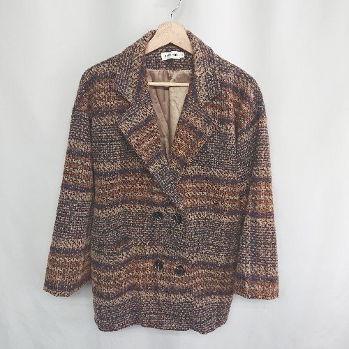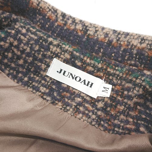 ■ ⊇ JUNOAH ジュノア チェック 長袖 ツイードジャケットコート サイズM ブラウン系 レディース E