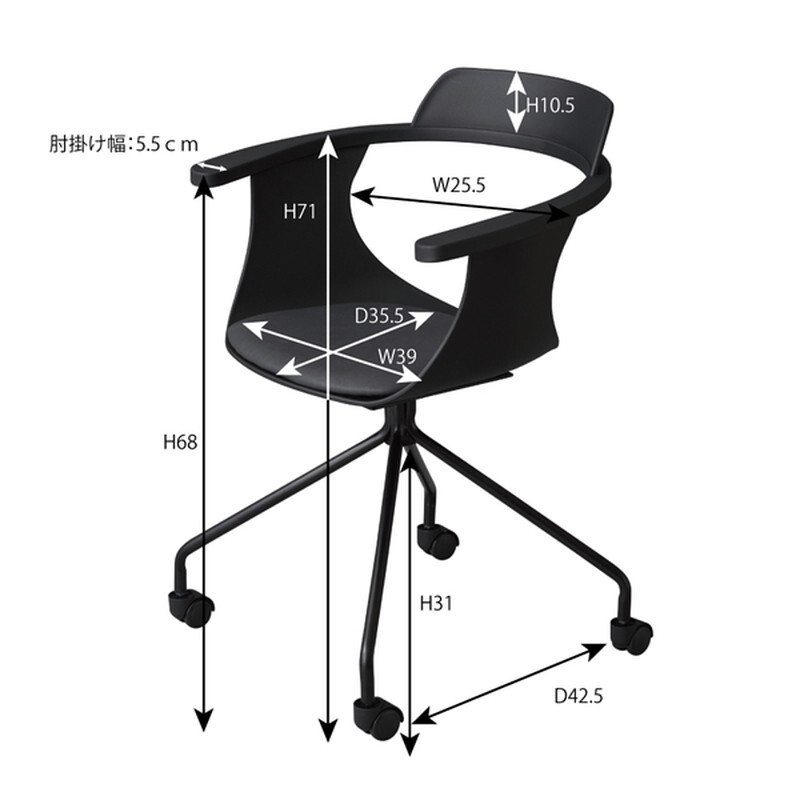 デスクチェア 【ブラック】 スチール(粉体塗装) ポリプロピレン