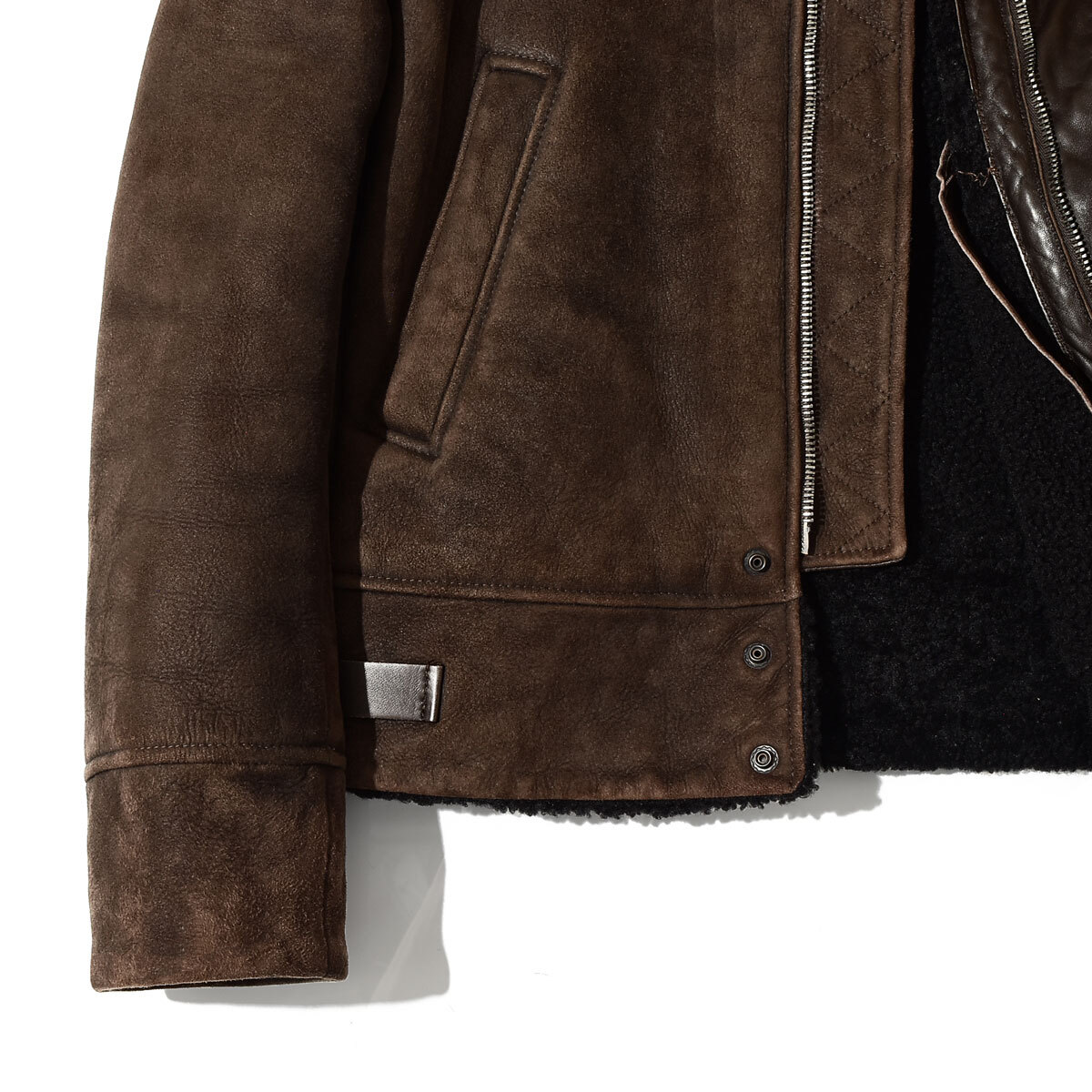 大人の渋さ◎ BURBERRY バーバリー さらっと羽織るだけで洗練されたラグジュアリー感且つ無骨な男らしさを醸し出すムートンライダーズJKT