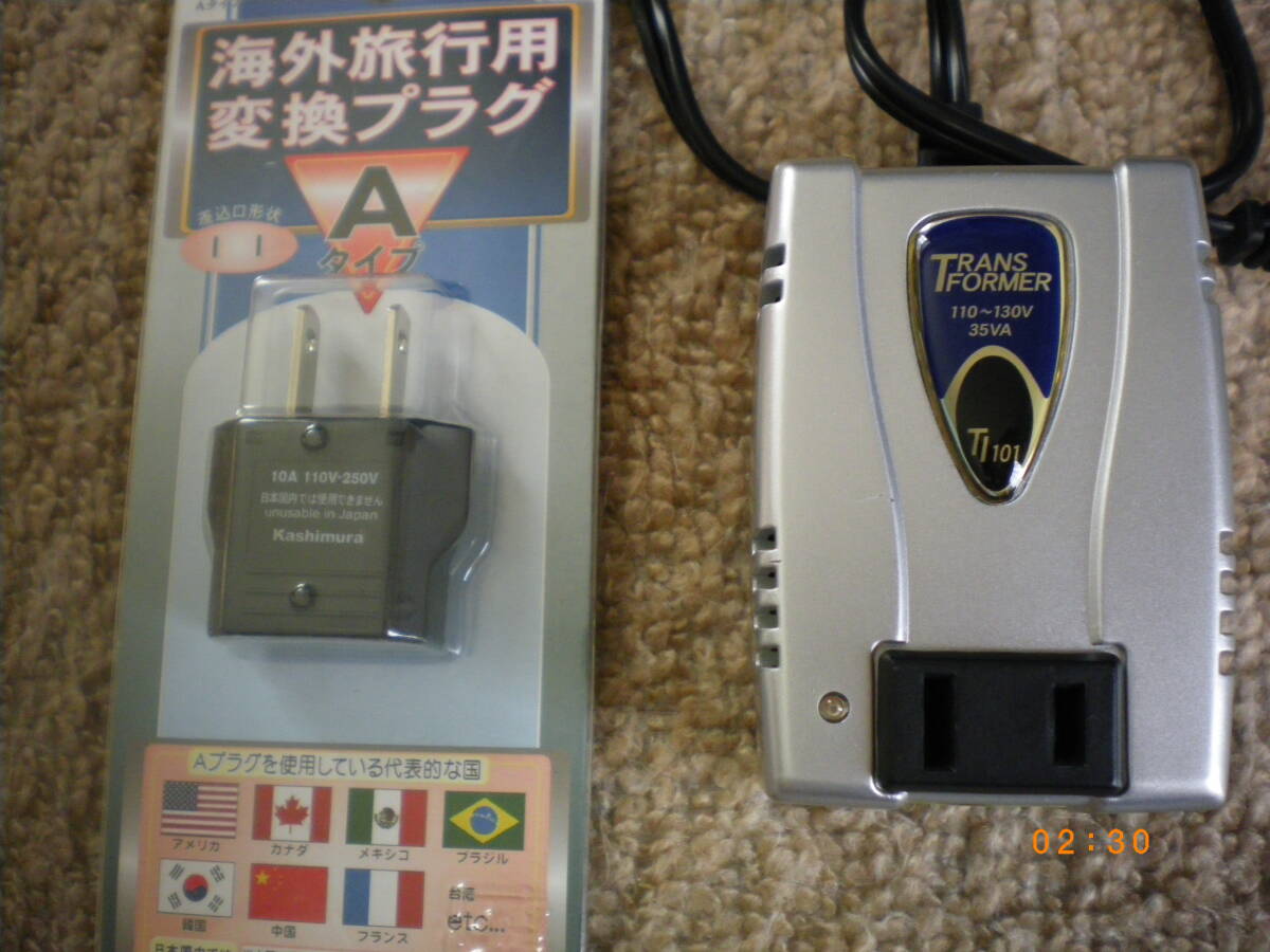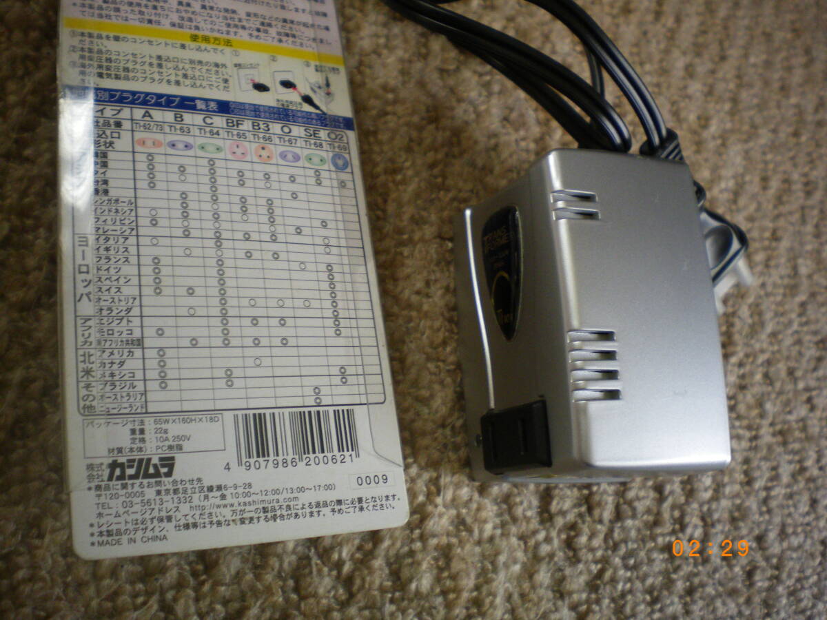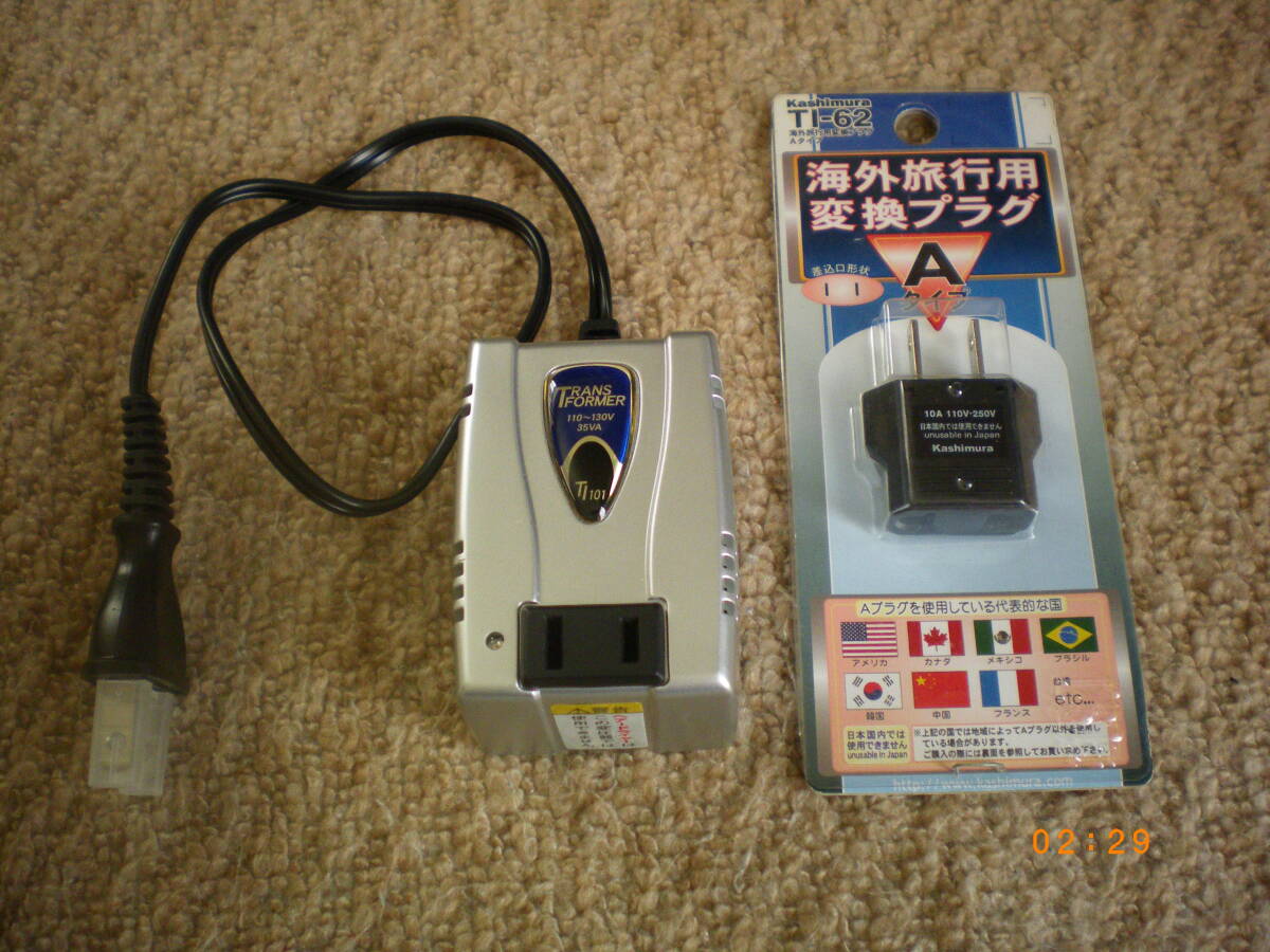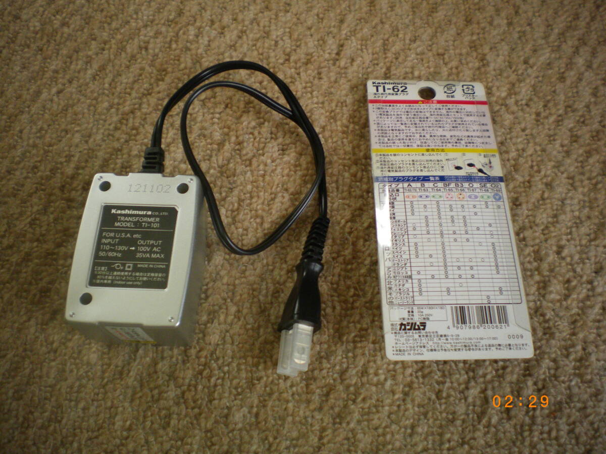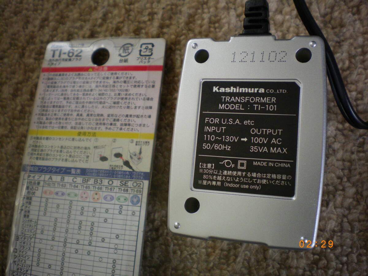 信頼のカシムラ TI-101 変圧器 トランス 米国・フランス・中国・韓国などで使用の変換プラグ付 海外旅行用変圧器 です。