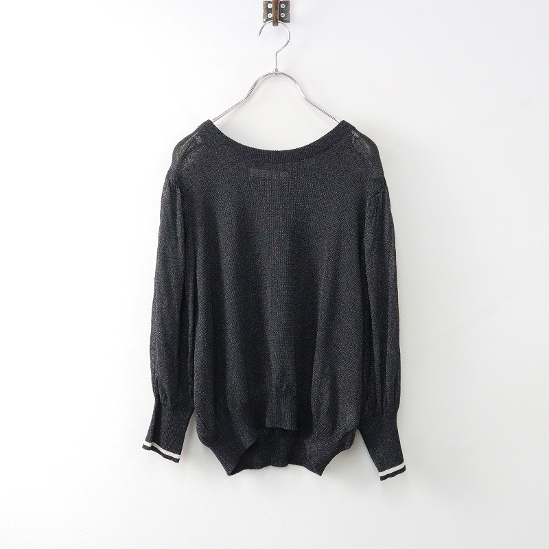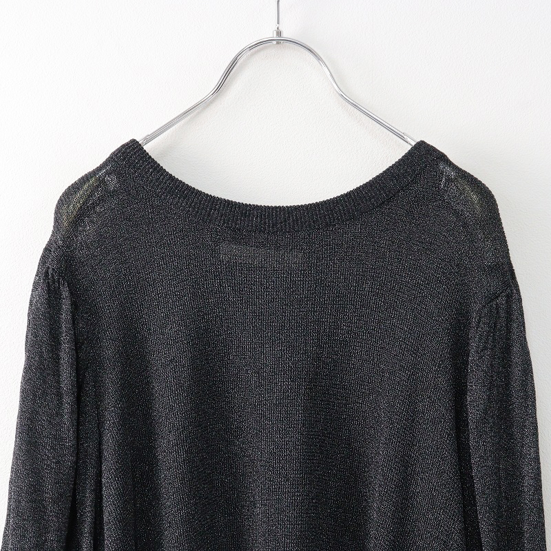 美品 大きいサイズ アズノウアズ ドゥバズ AS KNOW AS DE BASE ニットでギャザ袖プルオーバー 3/ブラック パフスリーブ【2400014093452】