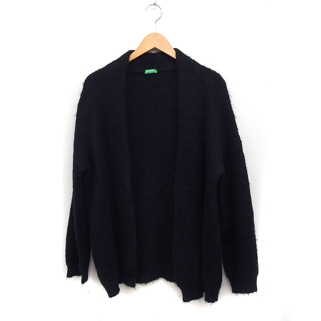 ユナイテッド・カラーズ・オブ・ベネトン UNITED COLORS OF BENETTON モヘヤブレンド ニット カーディガン オープン 無地 XSーS ブラック 黒 /FT31 レディース