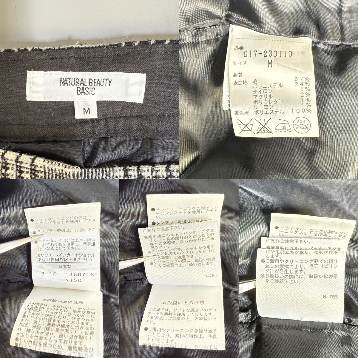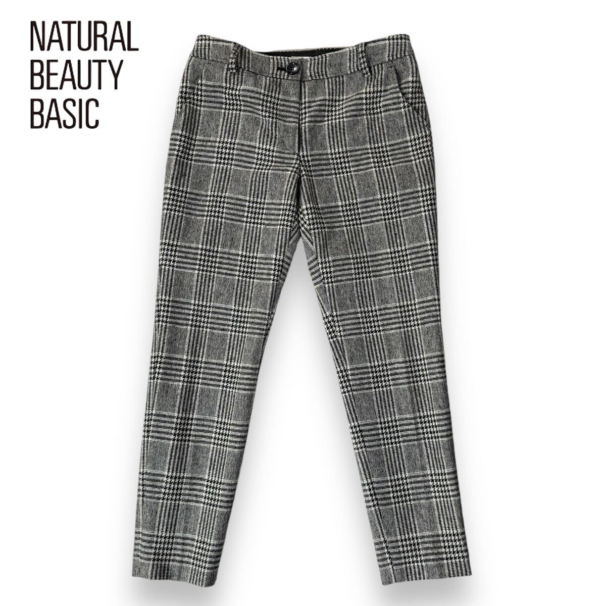 | 【美品】NATURAL BEAUTY BASIC ナチュラル ビューティー ベーシック ウール チェック スラックス ボトムス パンツ グレー Mサイズ 日本製 |