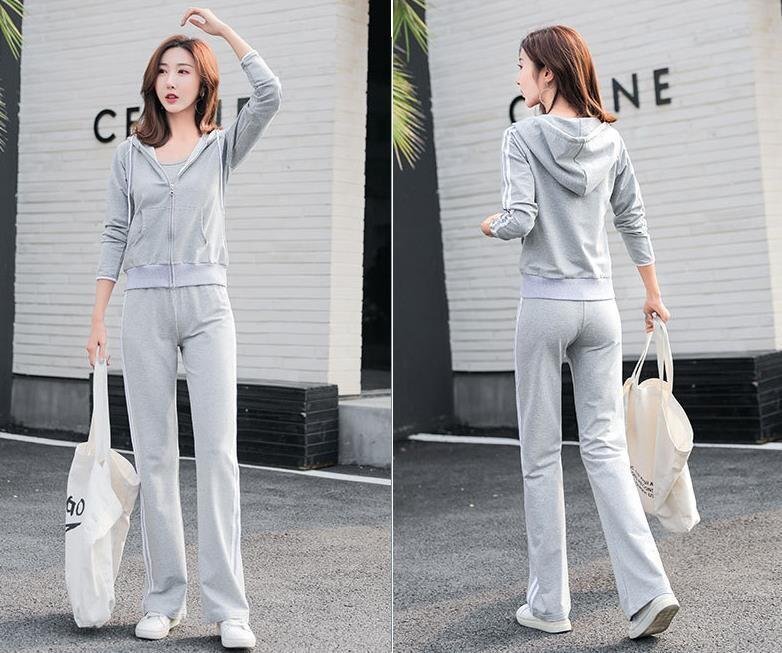 LRM1007★長袖 スウェット ジャージ  上下セット レディース トレーナー  カジュアル フード付き スポーツウエア