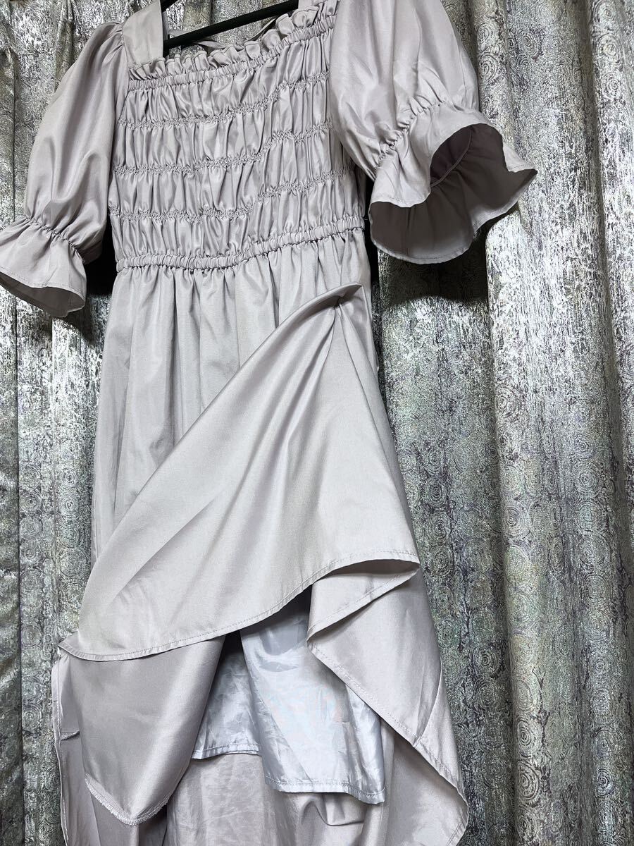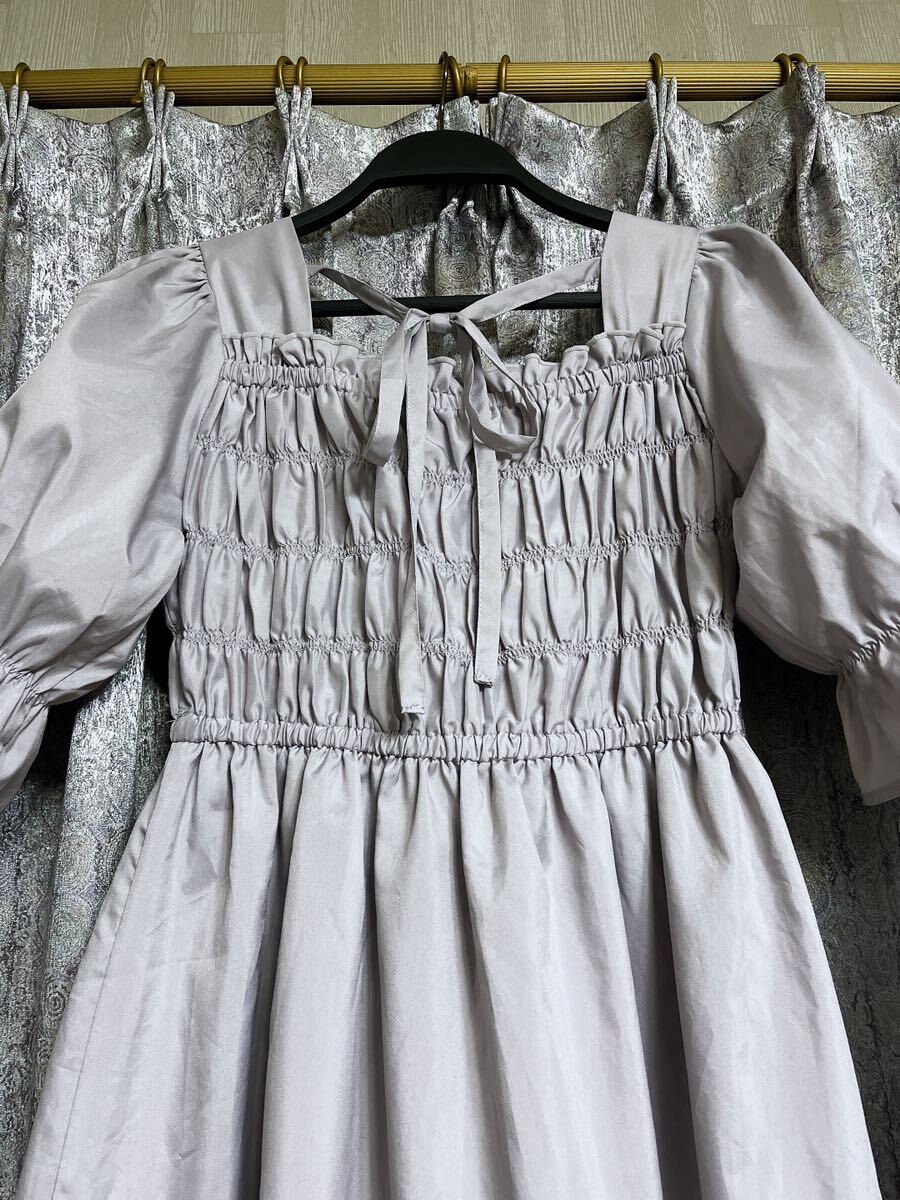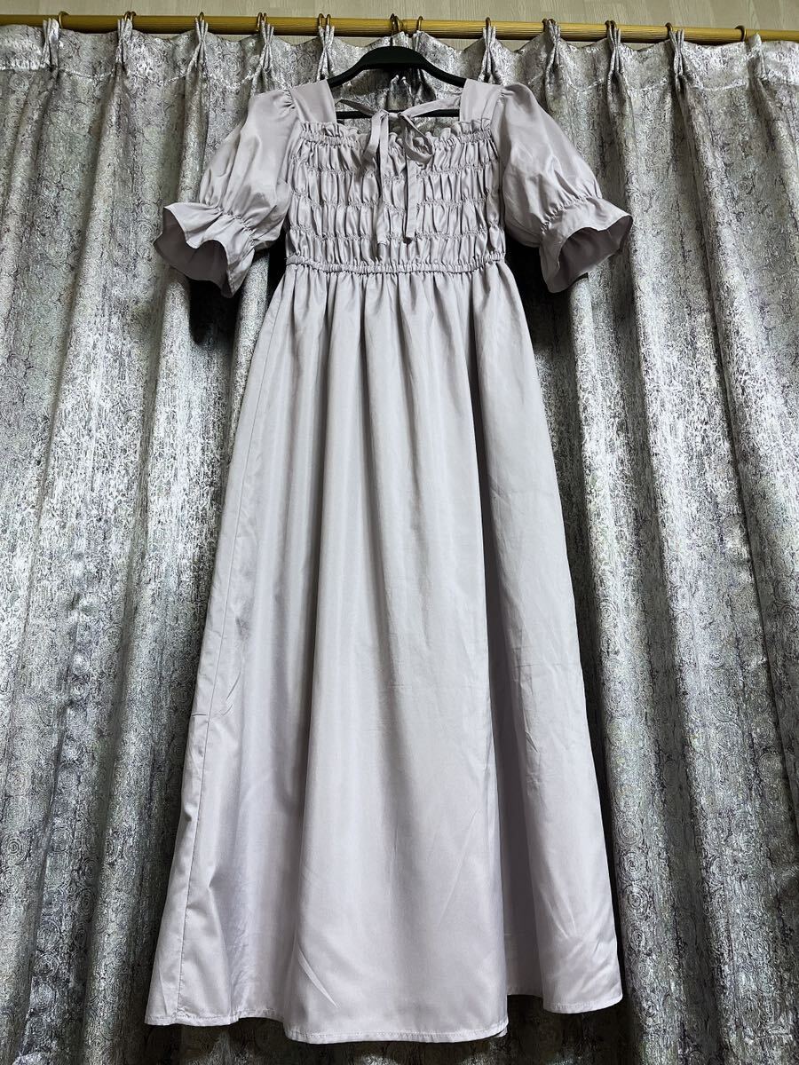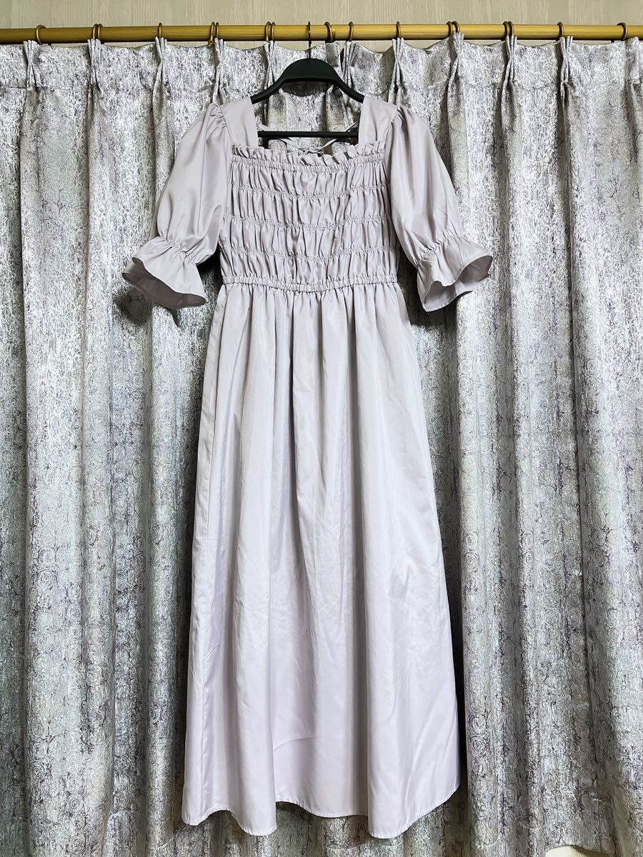 胸元からぐるっと幅広目のシャーリングが施され、多少太っても痩せても大丈夫。