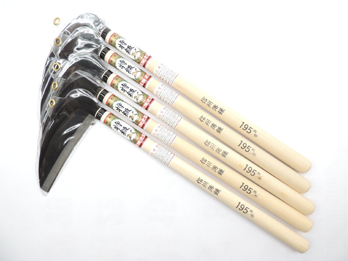 | 特級馬 信州型鋼付 薄鎌 195ミリ 丸柄 450ミリ5丁セット 信州鎌草刈鎌園芸除草 | |