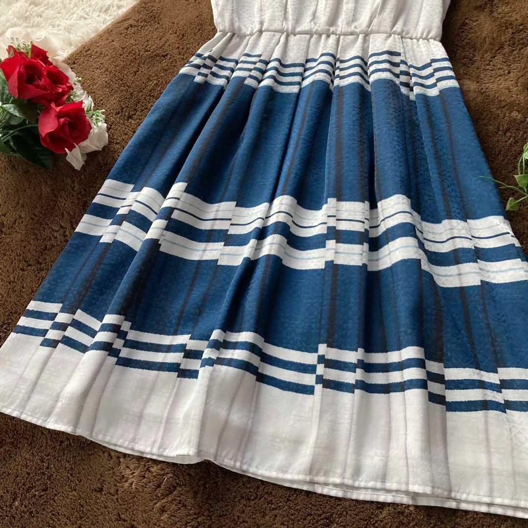 裏地に薄いシミ・胸元のタックの内側ですがインク染み・またスカートに糸引きが見られますが、目立つようなダメージはなくまだまだご着用いただけるコンディションです。