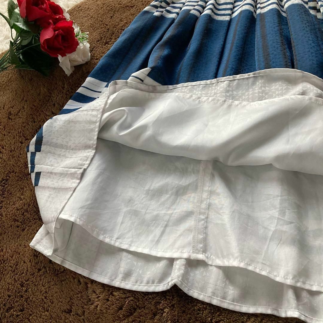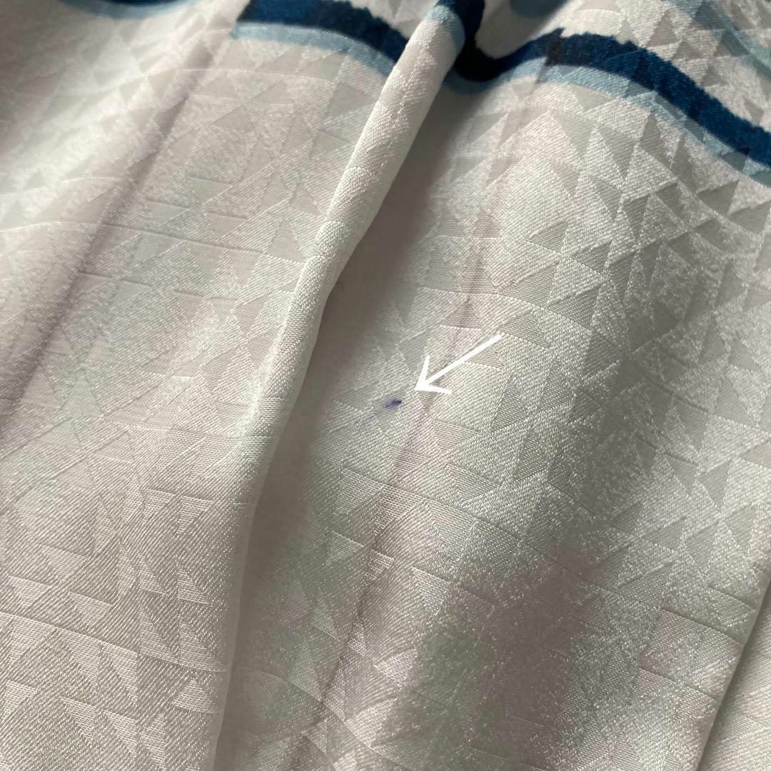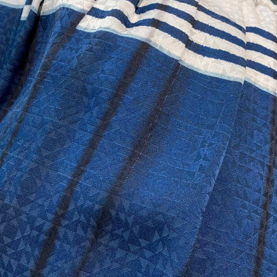 生地全体的に幾何学模様が入っており、ブルー系のボーダーがさわやかでとても素敵なお品物です。