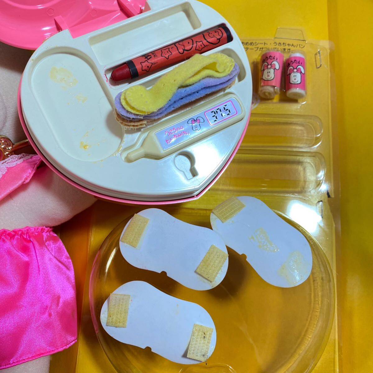 スカートや襟、リボンに経年劣化によるやぶれのため裏側から補修した跡がございます。色やけもございます。付属品は画像の通りです。ぬいぐるみにクレヨンのあとがございますが現状渡しとなります。マジックテープが取れている部分など画像でご判断お願いいたします。古い物、used品のため神経質な方や少しでもお気になさる方はご遠慮下さいませ。必ず自己紹介欄も一読お願い致します。