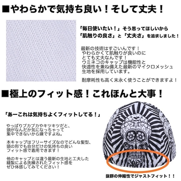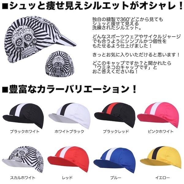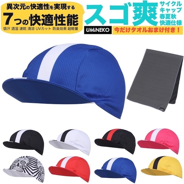 | ■■■店長のコメント■■■ ■ウミネコが求めたお客様にお喜びいただくための条件とは!? 1.とにかく快適! 快適性能7大項目である『吸汗』『透湿』『速乾』『清涼』『UVカット』『防臭効果』『超軽量』の機能をすべて有していること! 2.やわらかで気持ち良い!そして丈夫! やわらかくて肌触りが良いのにとても丈夫! 耐摩耗性の高い最新生地を採用して末永く使えること! 3.極上のフィット感! どんな髪型、頭の形でも気持ちの良いフィット感で着用できること! 4.圧倒的にオシャレ! 『どこのウェアですか!素敵なデザインですね!』と一目置かれるような洗練されたデザインであること! 5.どんな服装にも合わせられる! さらにどんなウェアやサイクルジャージでも似合うようにシンプルかつ個性をもたせるなデザインであること! 6.「え?ほんと?」って思うほどお得であること! お得なおまけがついているうえに、上記スペックを持ちながらメーカーでは到底実現しない圧倒的にお財布に優しい価格であること! ウミネコの商品は全条件達成!! 自信を持って喜んでいただける商品をご用意いたしました! ■炎天下でもとにかく快適 秘密は【吸汗、透湿、速乾、清涼、UVカット、防臭効果、超軽量】の快適7大項目を有しているから! 【ムレにくい!だからとっても涼しい!】 丸一日アクティブに走り回るサイクリスト。 やはり頭皮のムレが気になることも多いのではないでしょうか。 優れた吸汗・透湿・速乾性を持つ本キャップならキャップ内を効果的にドライに保ちます。 だから炎天下の暑い日も清涼快適! 【吸った汗もすぐ乾くから臭わない!】 汗でずっと濡れていたキャップのニオイは不快感満載ですよね。。。 本キャップはその通気性とよく乾く生地により、かいた汗もすぐに吸ってすぐに乾かすことができます。こうしてニオイが発生しづらい環境を作り、嫌なニオイを軽減します。 普段は普通のキャップやタオルという方には特に 性能を実感していただけるかと思います。 【UVカット!だか疲られにくい!】 有害な紫外線による日焼けは人間の体力を著しく奪っていきます。 UVカット機能を持つ本キャップなら着用するだけで紫外線をカットでき、紫外線に由来する疲労を大幅に軽減することができます。 【軽いから疲れにくい!】 重いキャップをかぶった時のあの感じ、肩こりに来る方も多いのではありませんか? 本キャップなら大丈夫! 自重約32gという軽さなのできっとかぶっていることを忘れるほど!安価なキャップと比較しても高い軽量性を持ちます。 ■やわらかで気持ち良い!そして丈夫! 「毎日使いたい!」そう思ってほしいから「肌触りの良さ」と「丈夫さを」追求しました! 最新の技術はすごいんです! やわらかくて肌触りが良いのにとても丈夫なんです! ウミネコのキャップは機能性と快適性を兼ね備えた最新のマイクロメッシュ生地を採用しています。 耐摩耗性も高く末永く使うことができますよ! ■極上のフィット感!これほんと大事! 「あーこれは気持ちよくフィットしてる!」 やっぱりブカブカやキツキツだと、頭がなんだか気になっちゃって集中できないから嫌ですよね。 本キャップはフリーサイズなのでどんな髪型、頭の形でも自分だけの気持ちの良いフィット感で着用できます! 他のキャップとは違う最新の生地と工夫した縫製による洗練されたフィット感をぜひ体感してみてください! ■シュッと痩せ見えシルエットがオシャレ! 独自の縫製で360°どこから見てもシュッと痩せて見える洗練されたシルエット。 どんなスポーツウェアやサイクルジャージでも合うようにシンプルかつ個性をもたせるよう仕上げました! きっとお気に入りいただけると思います! どこのキャップですか?と聞かれたら「ウミネコのキャップです」と おこ答えくださいね! ■今だけお得なおまけ付き! 水に濡らして振るだけカンタン!! 【極涼爽快 スゴ冷 やわらか冷感スポーツ・トレーニング タオル】 今だけ購入者様全員にこちらを1枚プレゼント! ウミネコの新製品ぜひぜひお試しくださいませ! イチオシポイント: ・驚異の気化冷却!瞬間冷却で速攻15度!極上の清涼体験! ・やわらかくて肌触りが良いのにとても丈夫! ・研究された使いやすいサイズ感 用途: スポーツ、ヨガ、トレーニング、筋トレ、運動、フィットネス、スケボー、スケート、インラインスケート、自転車、サイクリング、バイク、建築作業、DIY、アウトドア、釣り、フィッシング、登山、ハイキングの吸汗や熱中症対策におすすめです! ■他商品とは違うイチオシポイント ・『吸汗』『透湿』『速乾』『清涼』『UVカット』『防臭効果』『超軽量』の快適性能7大項目を有していてとにかく快適! ・やわらかくて肌触りが良いのにとっても丈夫! ・抜群のフィット感を実現する最新の生地と縫製! ・洗練されたデザイン ・どんなウェアやサイクルジャージでも似合うようにシンプルかつ個性をもたせるなデザインであること。 ・お得なおまけがついている! ・どんな服にも合