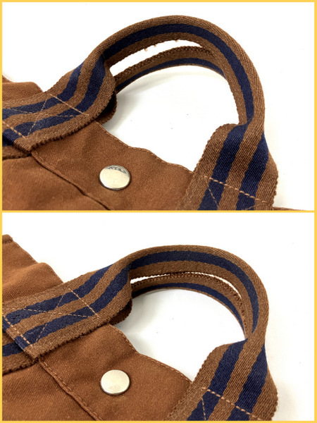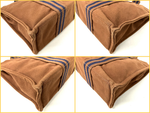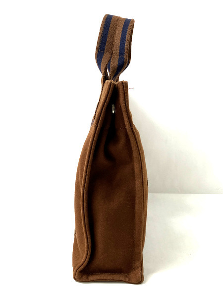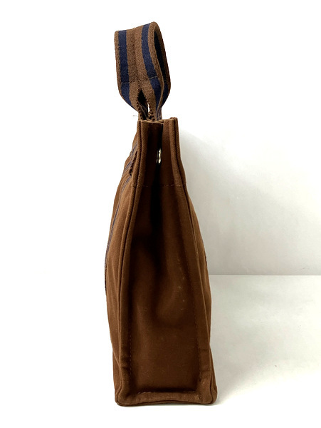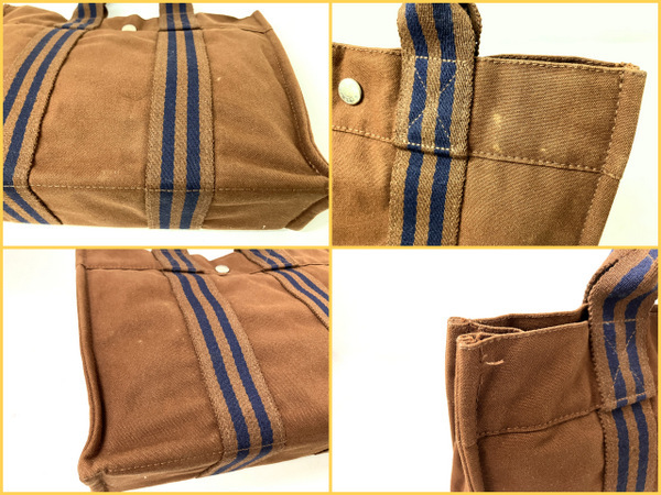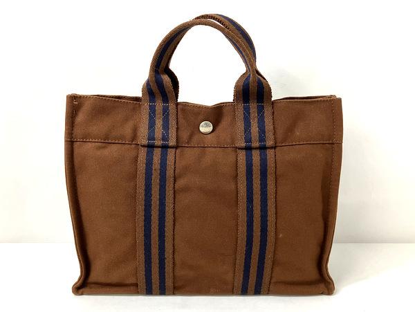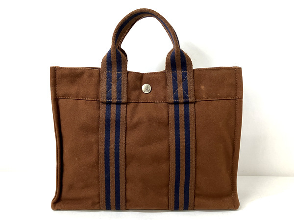 【★即決★】HERMES エルメス フールトゥ トートPM ハンドバッグ ブラウン ネイビー キャンバス