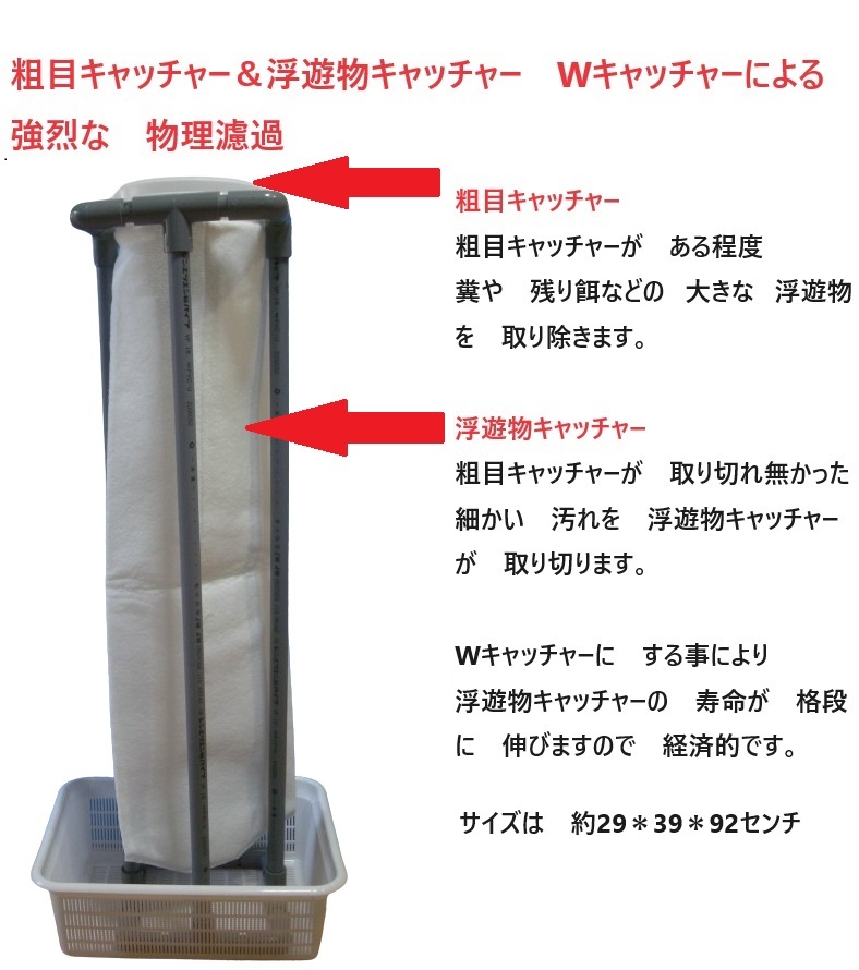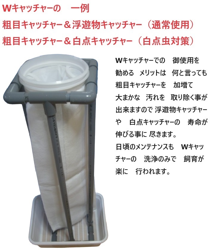 Wキャッチャーでの メリットは 浮遊物キャッチャーの 寿命を 伸ばして