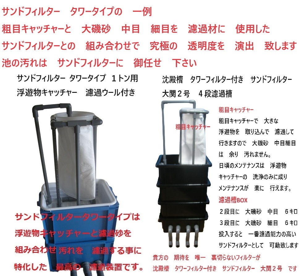 大型ケース 池対応 90センチ タワーフィルター 浮遊物キャッチャー 粗目キャッチャー付き サンドフィルター対応 1