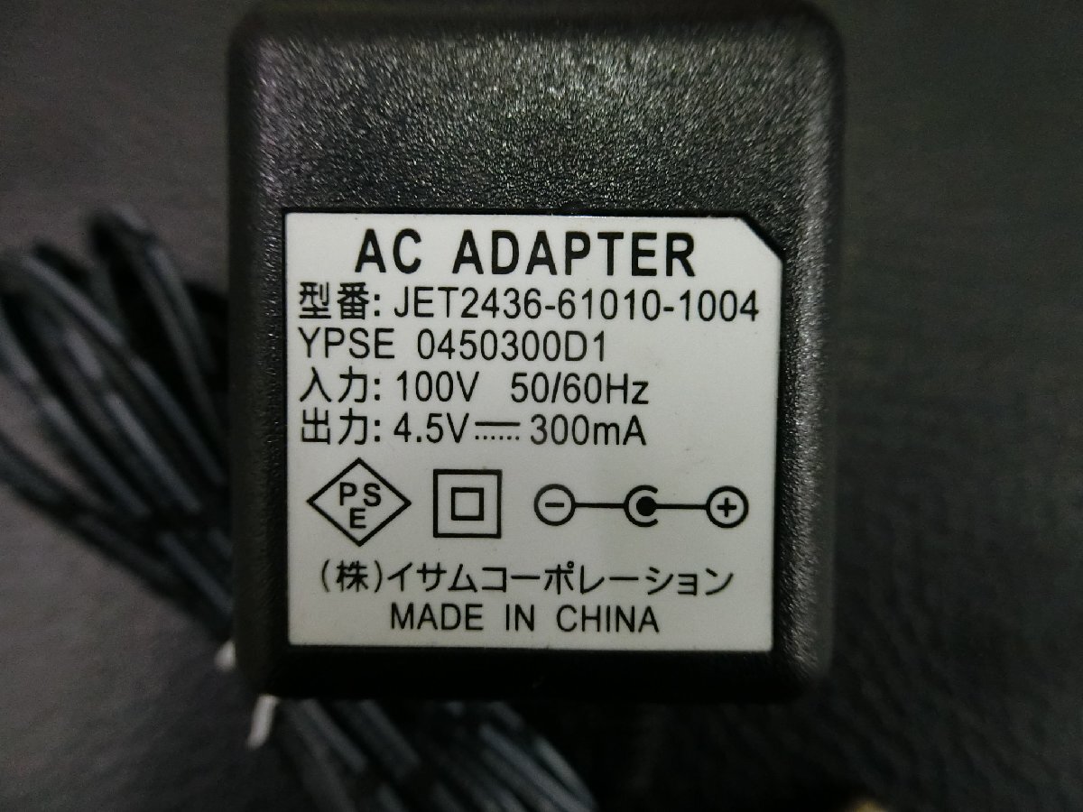 | 仕 様 | 差込外径: 5.5mm 入力: 100V 出力: 4.5V/300mA コンセント: 2極 ※対応機種は自身にてお調べ下さい。 |