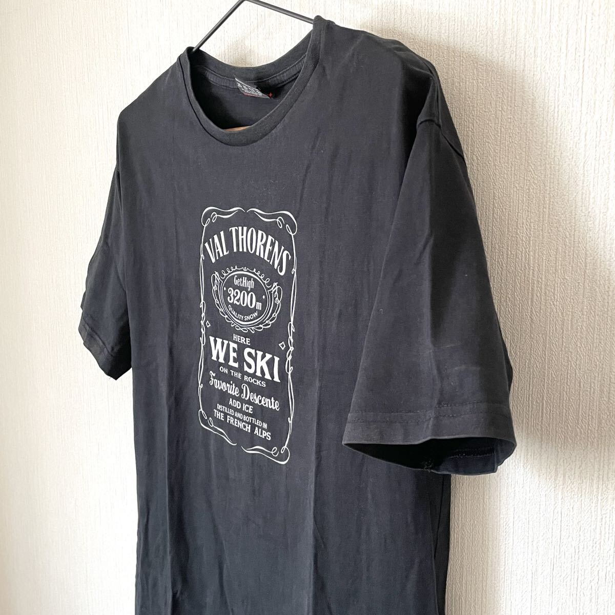ウイスキーのラベルをモチーフにしたプリントのクルーネックTシャツです。