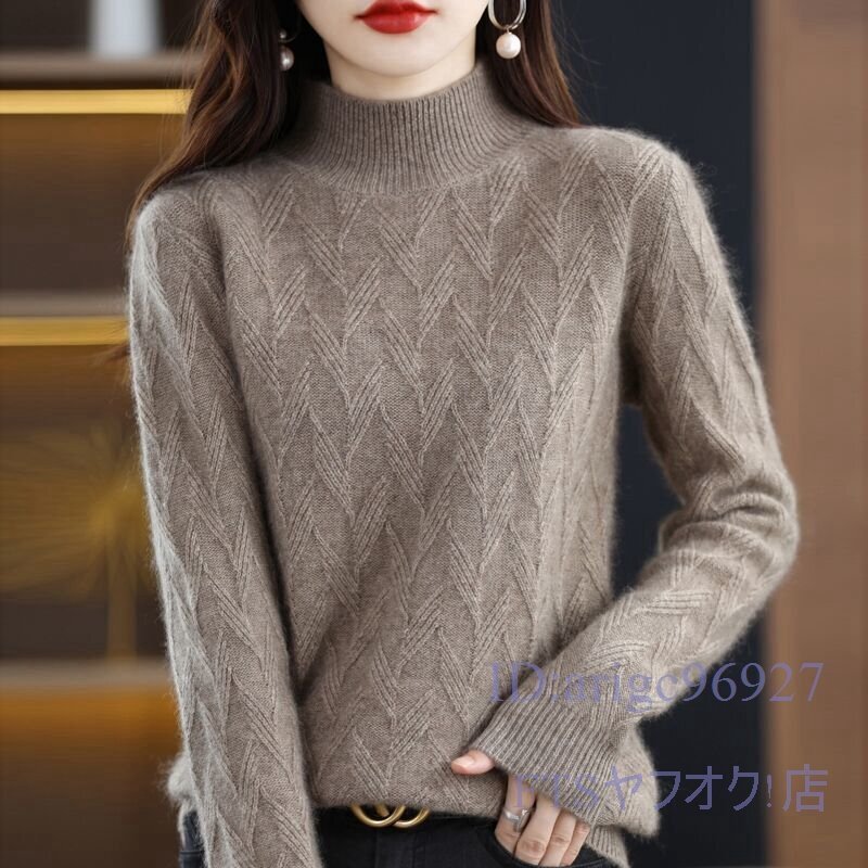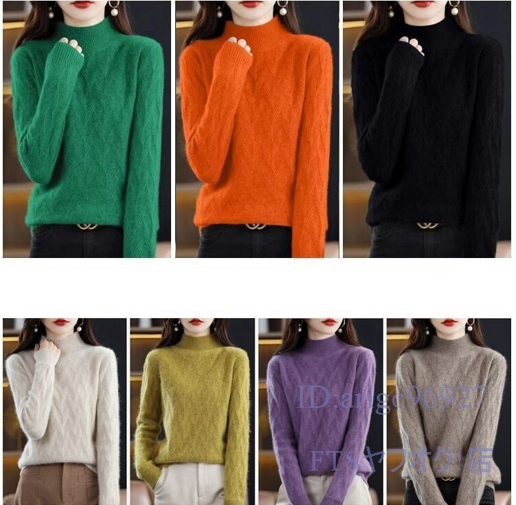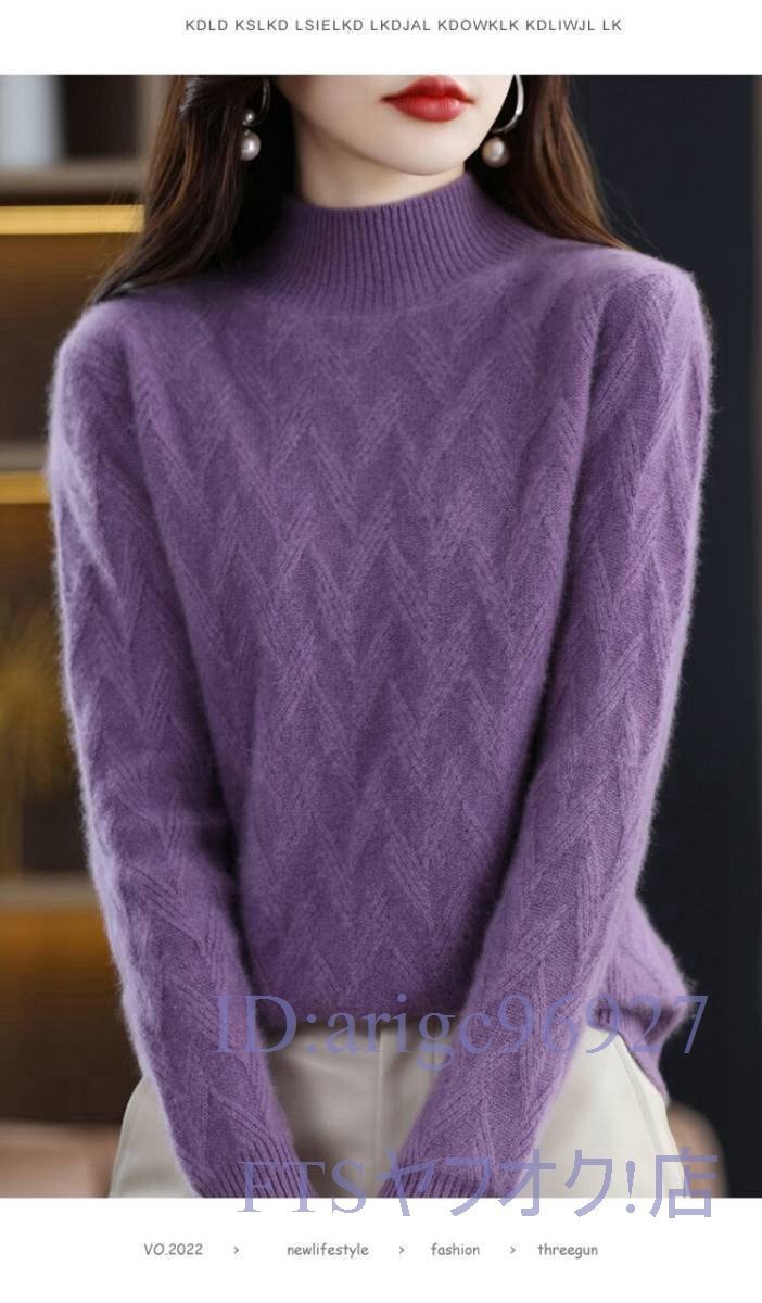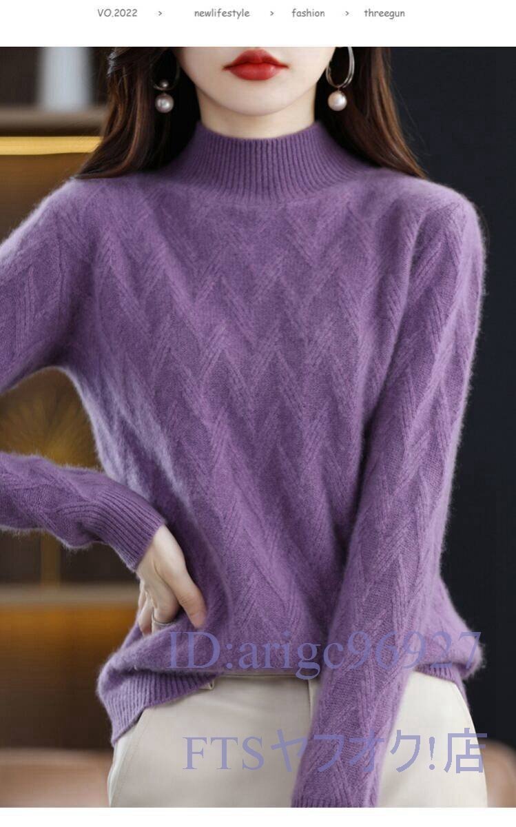 A0551☆新品フリーサイズ オシャレ ミンクカシミヤ混 ニットセーター 柔らかい 暖かい ストレッチ 長袖 レディース ニットトップス *紫