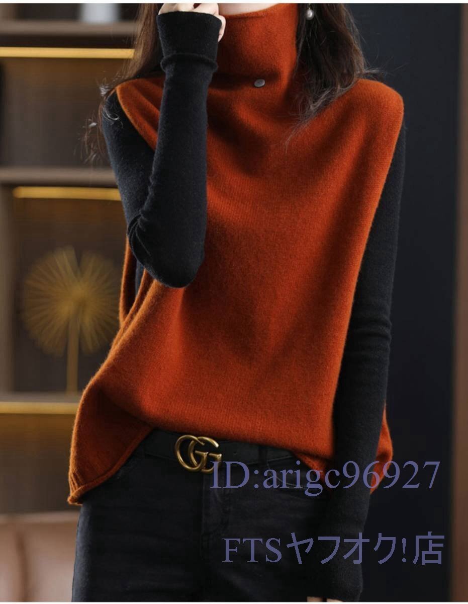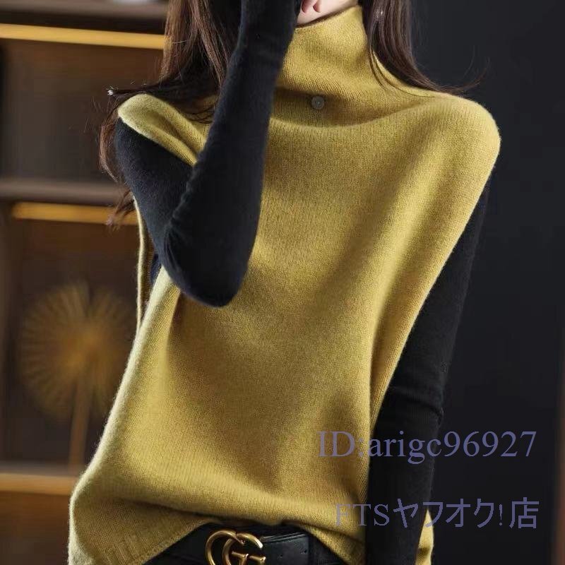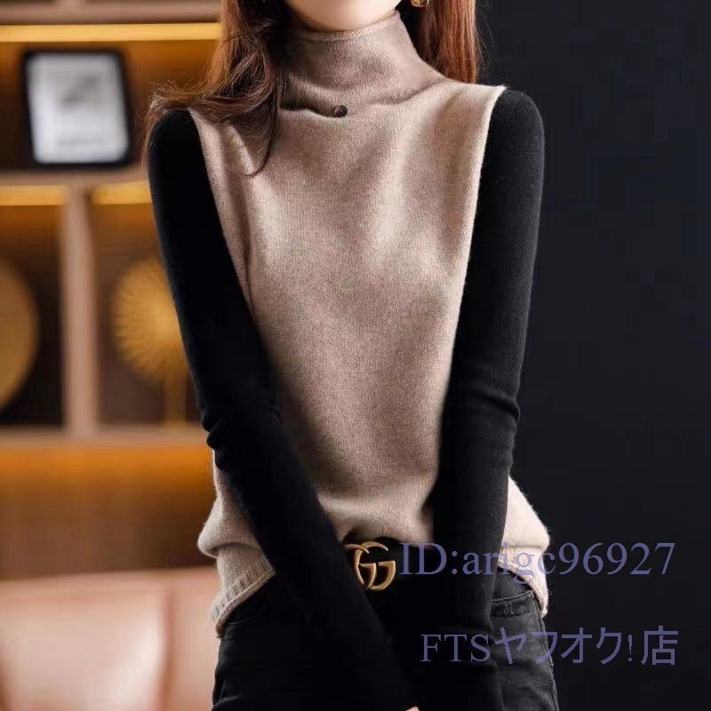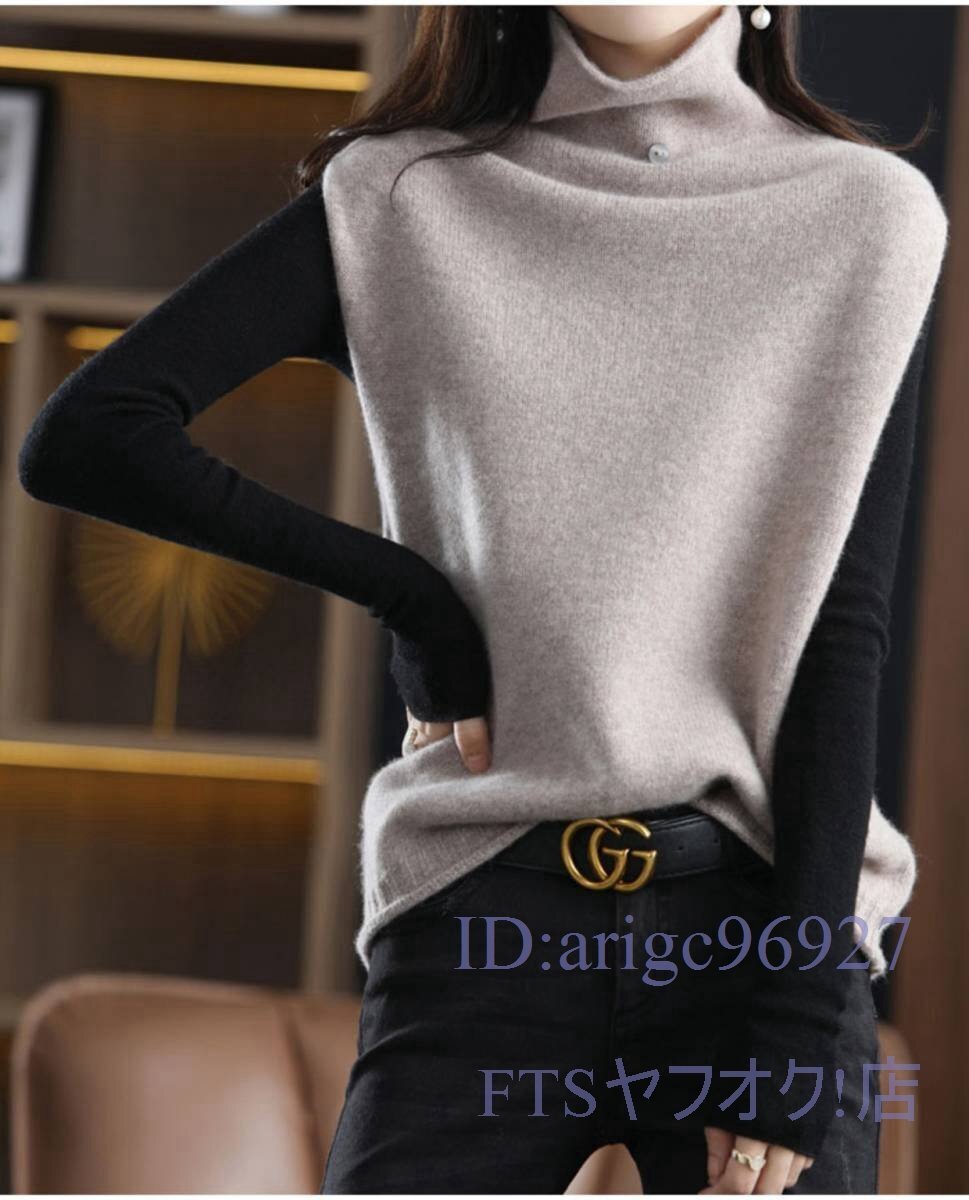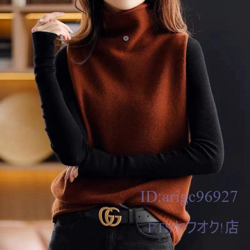 A1581☆新品Fサイズ■秋 オシャレ ハイネック ニットベスト ミンクカシミヤ混 暖かい 袖なし ニットセーター ★キャメル