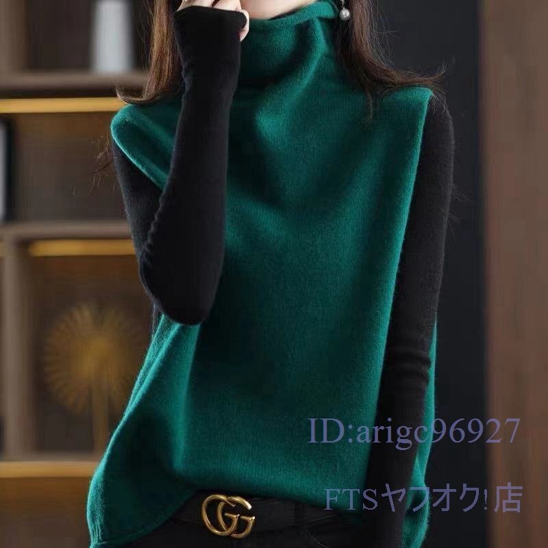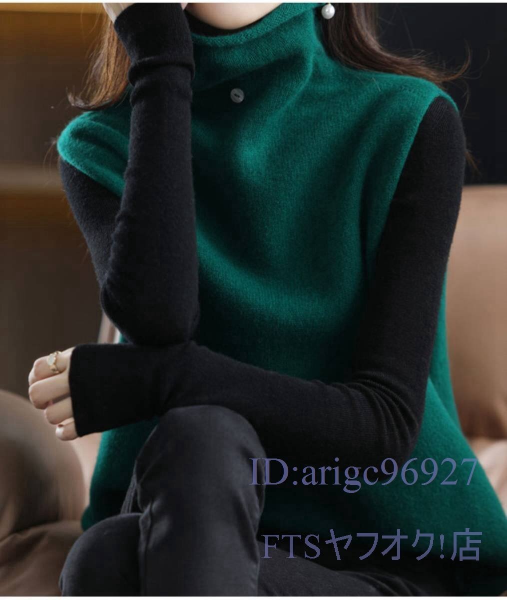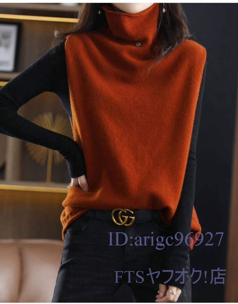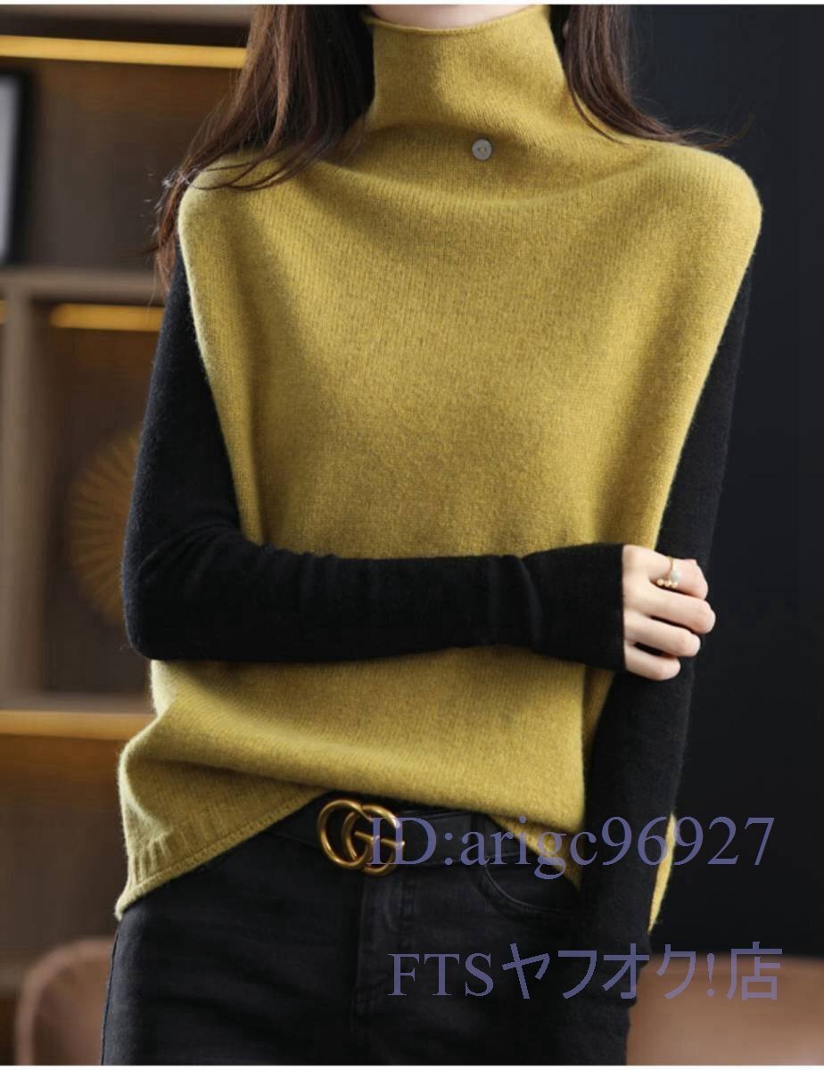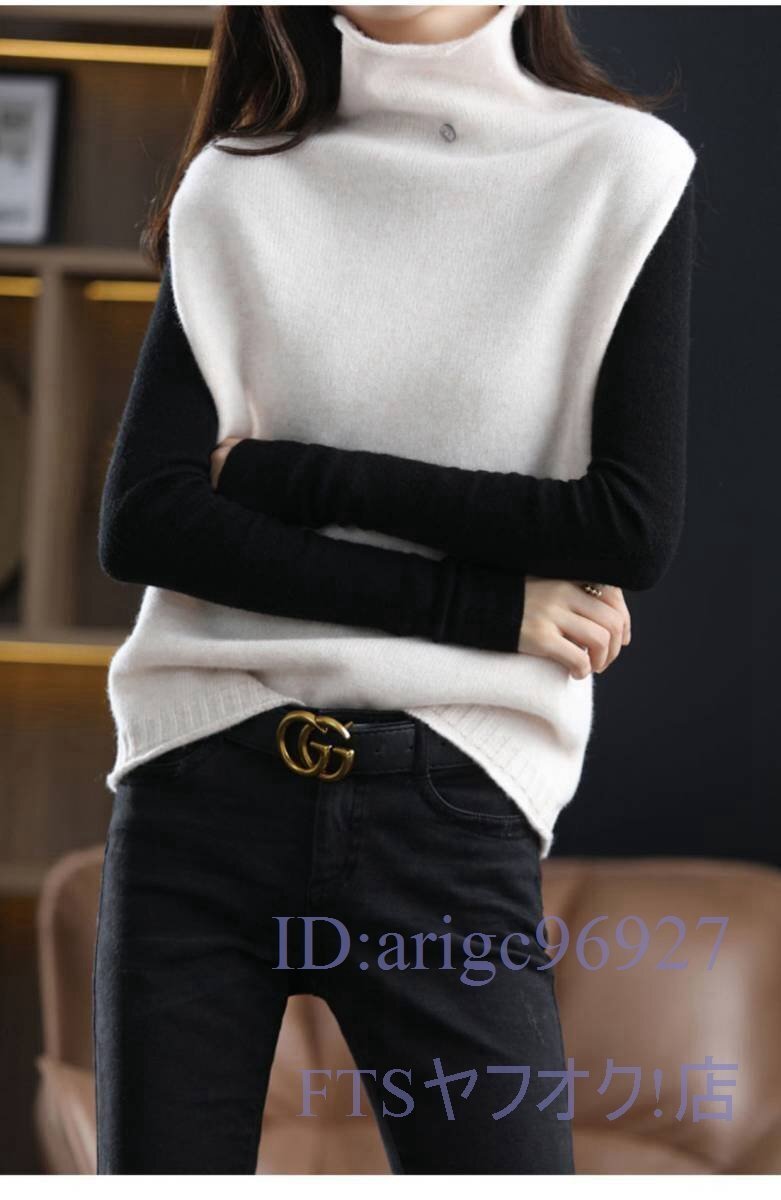 A1581☆新品Fサイズ■秋 オシャレ ハイネック ニットベスト ミンクカシミヤ混 暖かい 袖なし ニットセーター ★キャメル