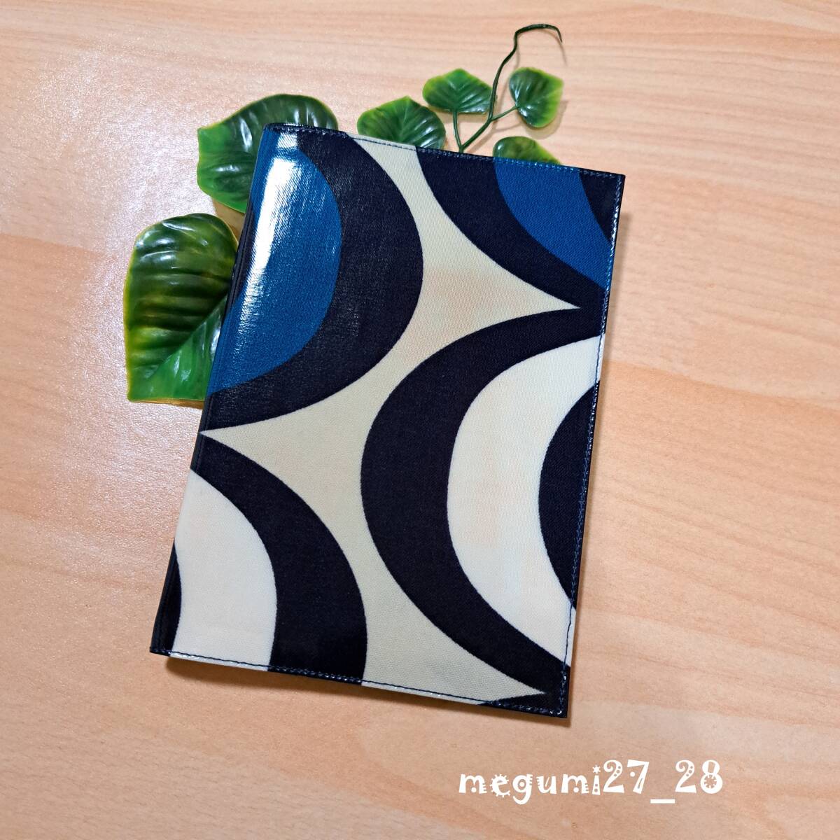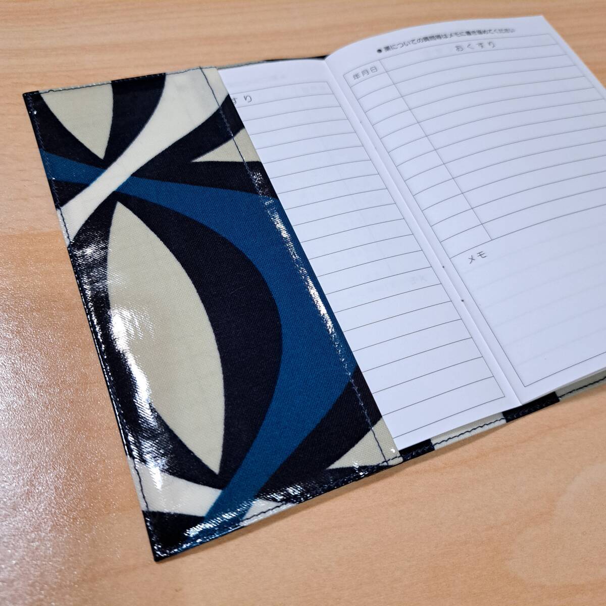 <お薬手帳カバー>幾何学ブルー♪ハンドメイド♪ラミネート加工♪おくすり手帳