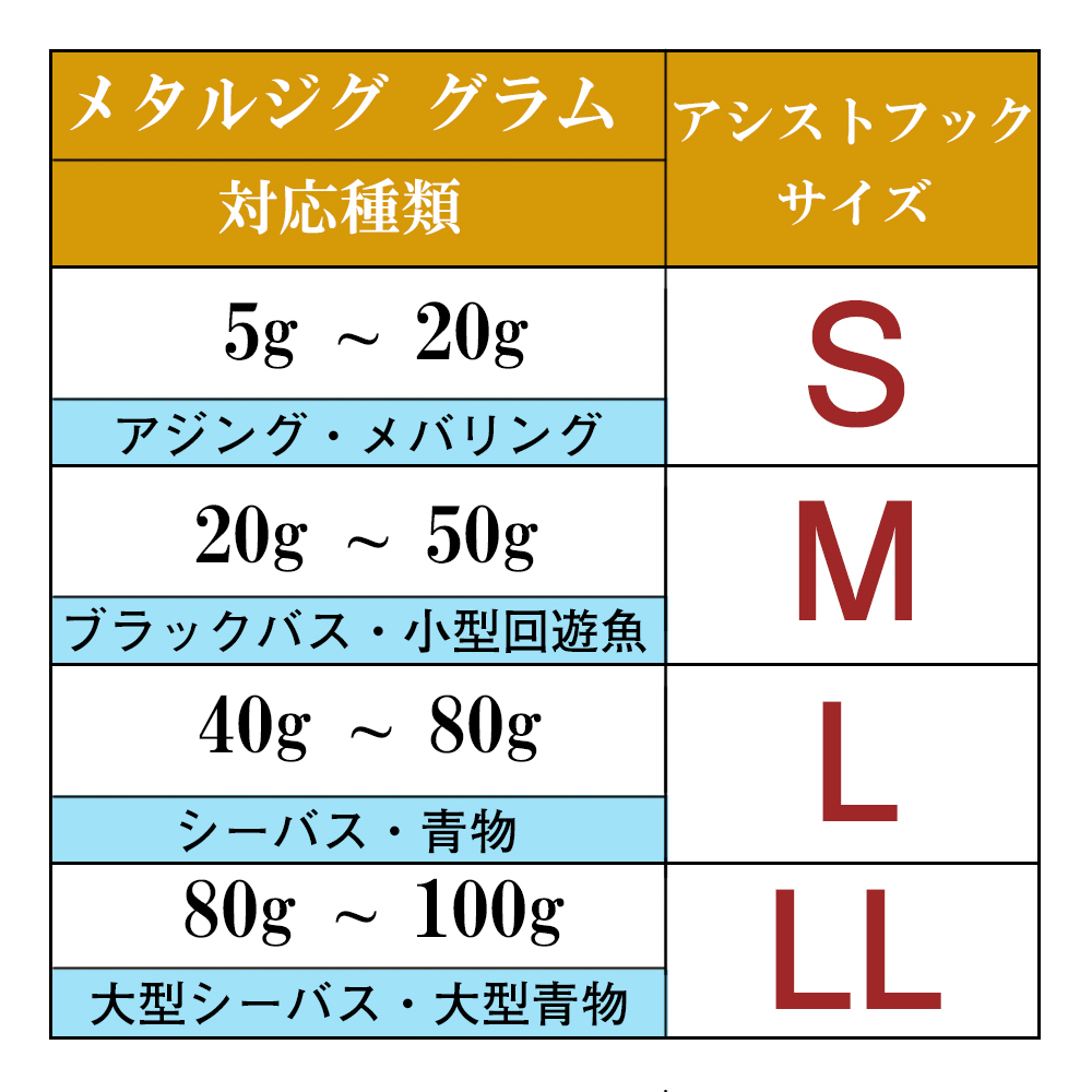 ライトショアジギングに最適なアシストフックでメジャークラフトのジグパラの30gから60gのサイズで仕様してます!